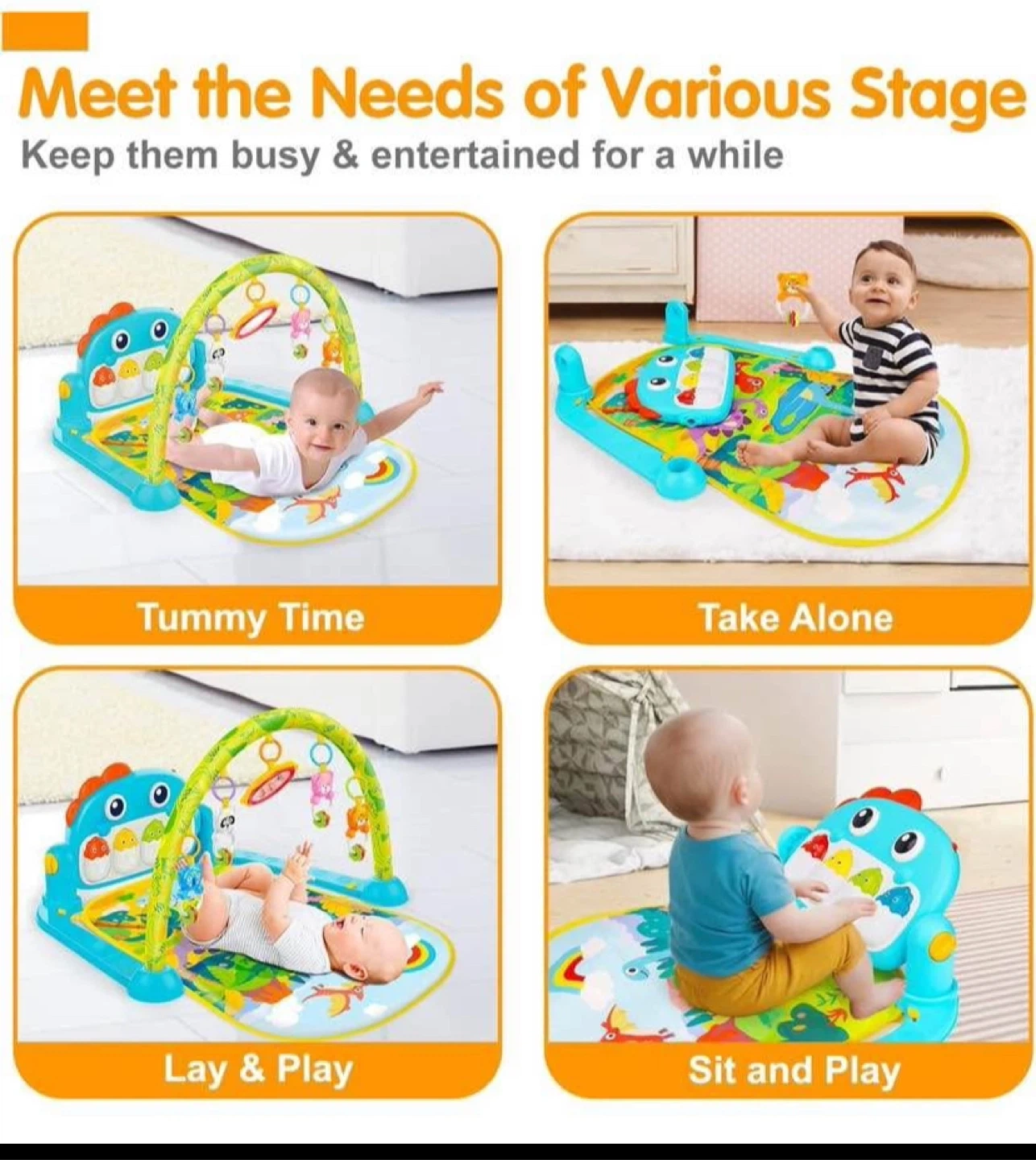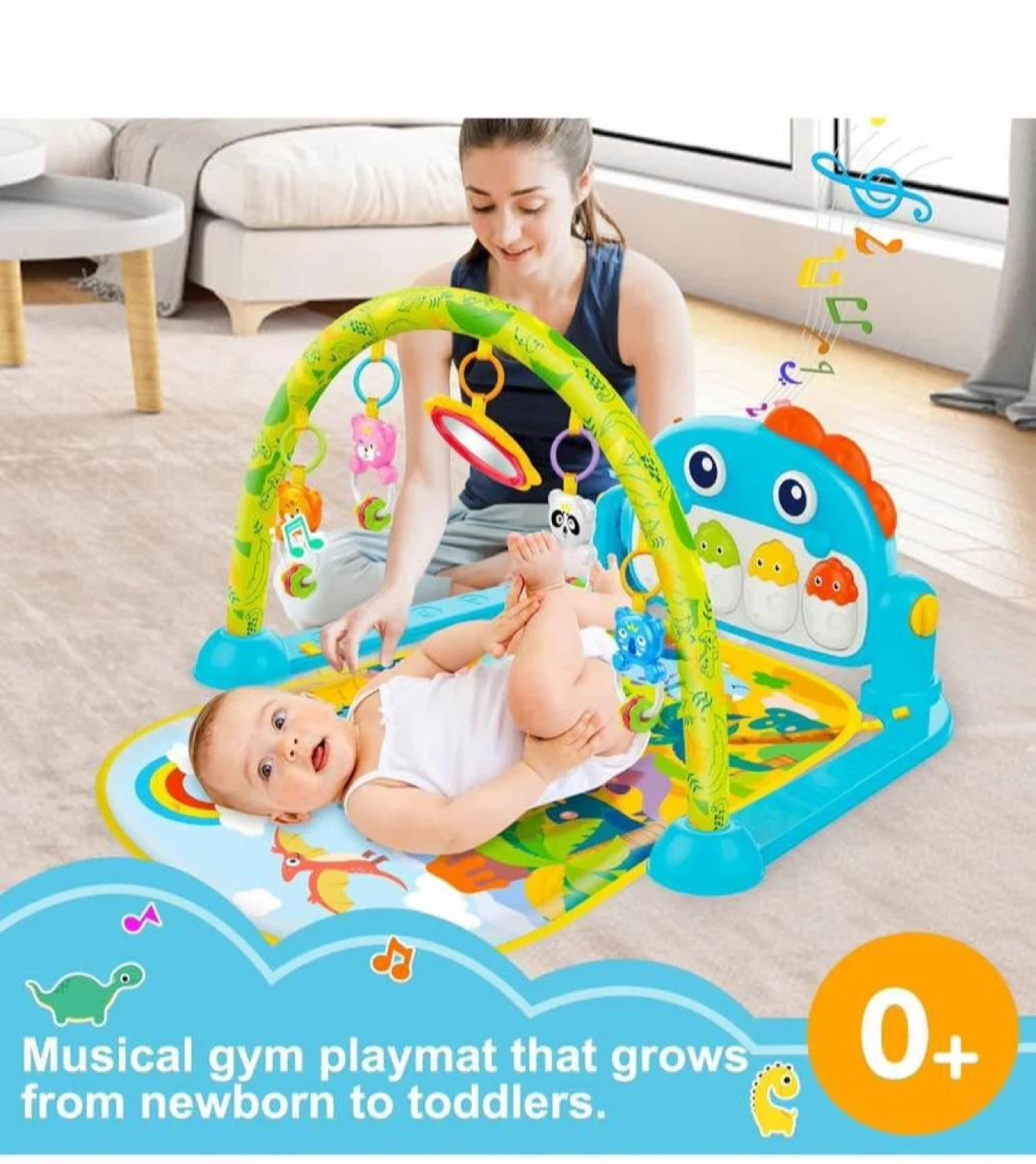 This cute dino baby playmat is perfect for your little one's early development! It's a musical gym playmat that grows with your baby from newborn to toddler. It helps develop fine motor skills with features like a baby mirror, kick & play piano, baby rattles, and is also washable. It's designed to improve concentration, sensory development, colour perception, and hand-eye coordination. It keeps them busy and entertained for a while with tummy time, take-along, lay & play, and sit & play options