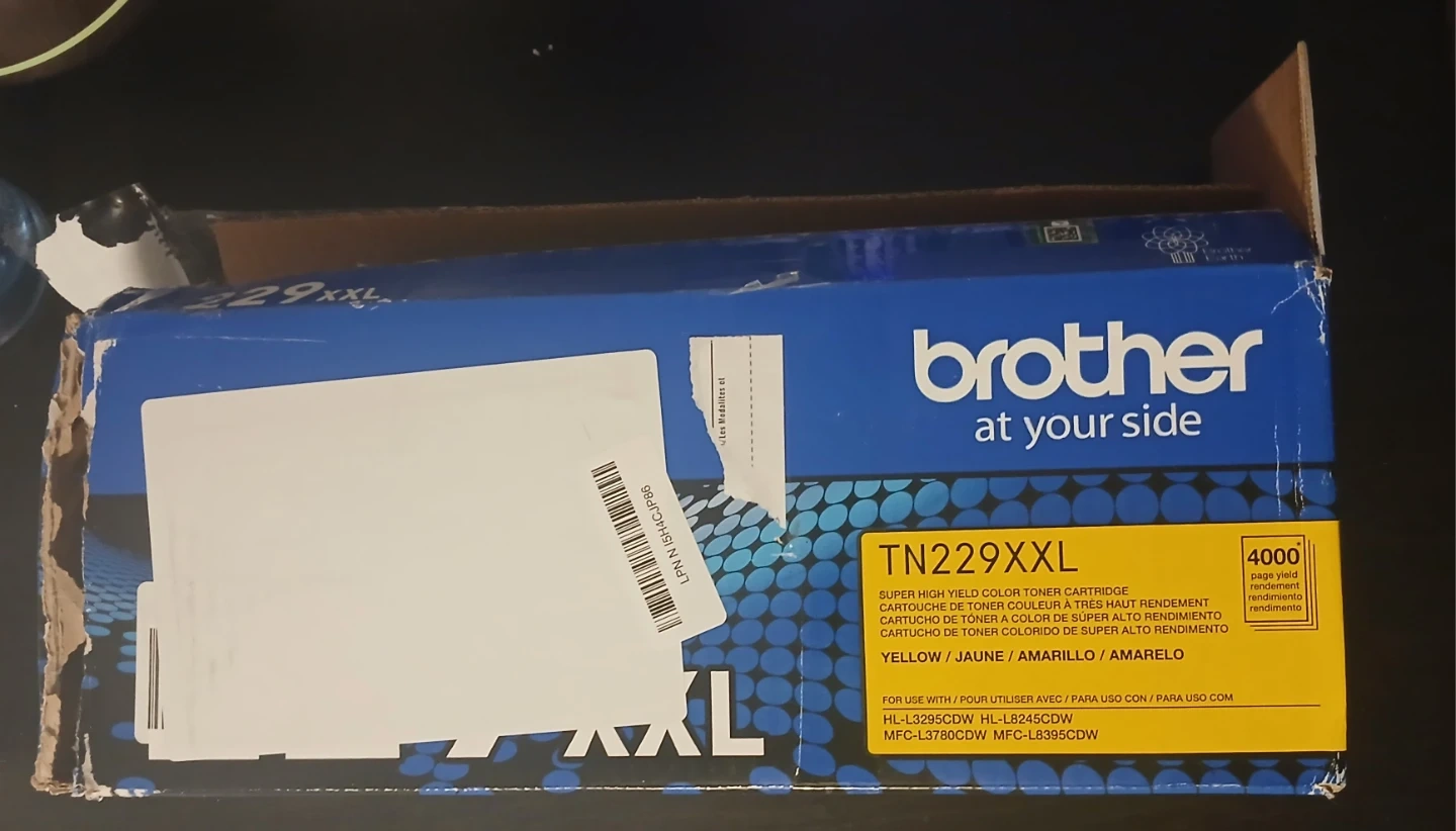 Brother TN229XXL Super High Yield Yellow Toner Cartridge. It's compatible with HL-L295CDW, HL-L8245CDW, MFC-L3750CDW, and MFC-L3770CDW printers. Offers 4000 page yield.