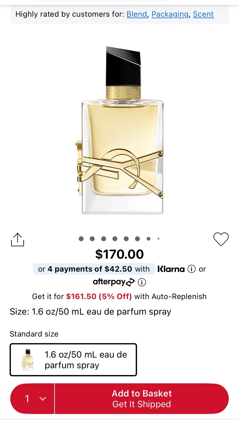 This is the Yves Saint Laurent Libre Eau de Parfum spray in the 50 mL size. It's the standard size for this popular fragrance. The perfume comes with its original box.