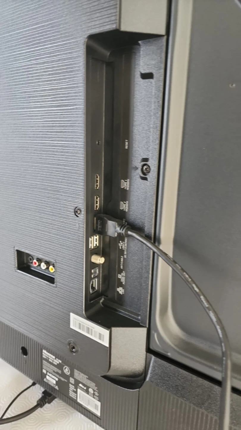 This is a Hisense 55-inch smart TV. It comes with multiple HDMI ports and USB inputs. This TV offers access to streaming apps like Netflix and YouTube.