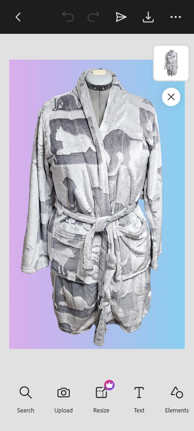 Cozy grey plush robe featuring cats and dogs. It has a tie waist and two front pockets for comfort. Perfect for lounging!