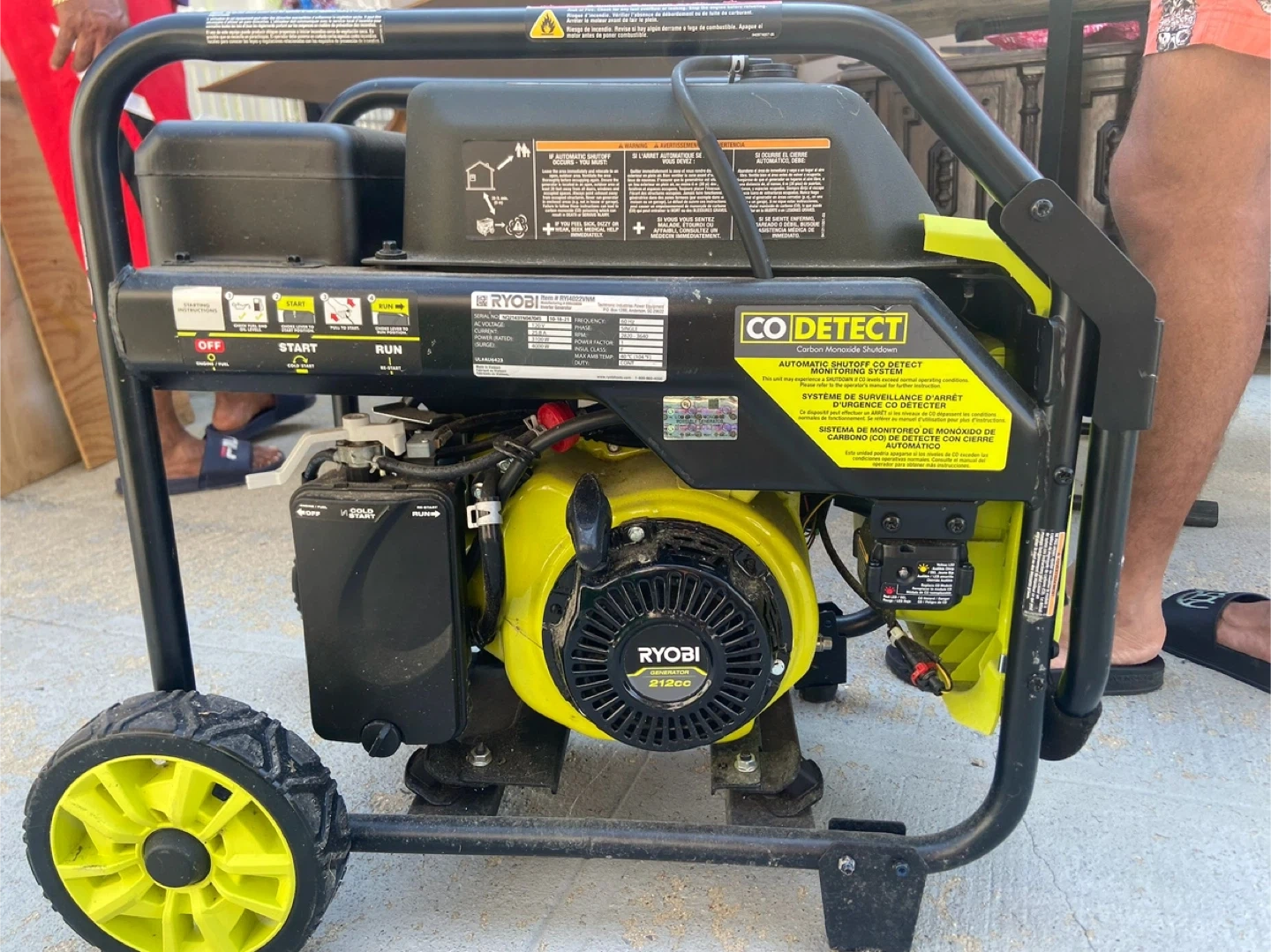Selling a Ryobi Easy Start inverter generator. It delivers 3400 running watts and 4000 starting watts. It also features CO Detect carbon monoxide shutdown for safety.