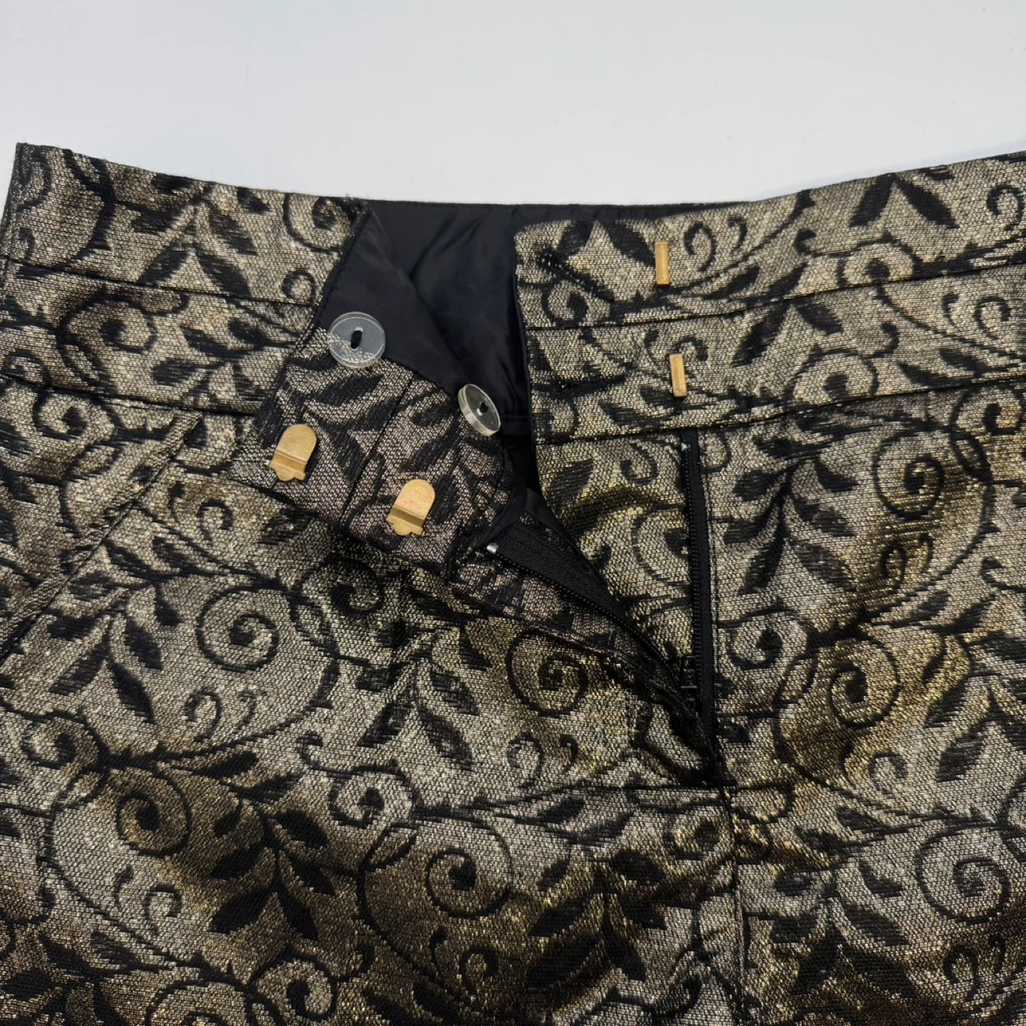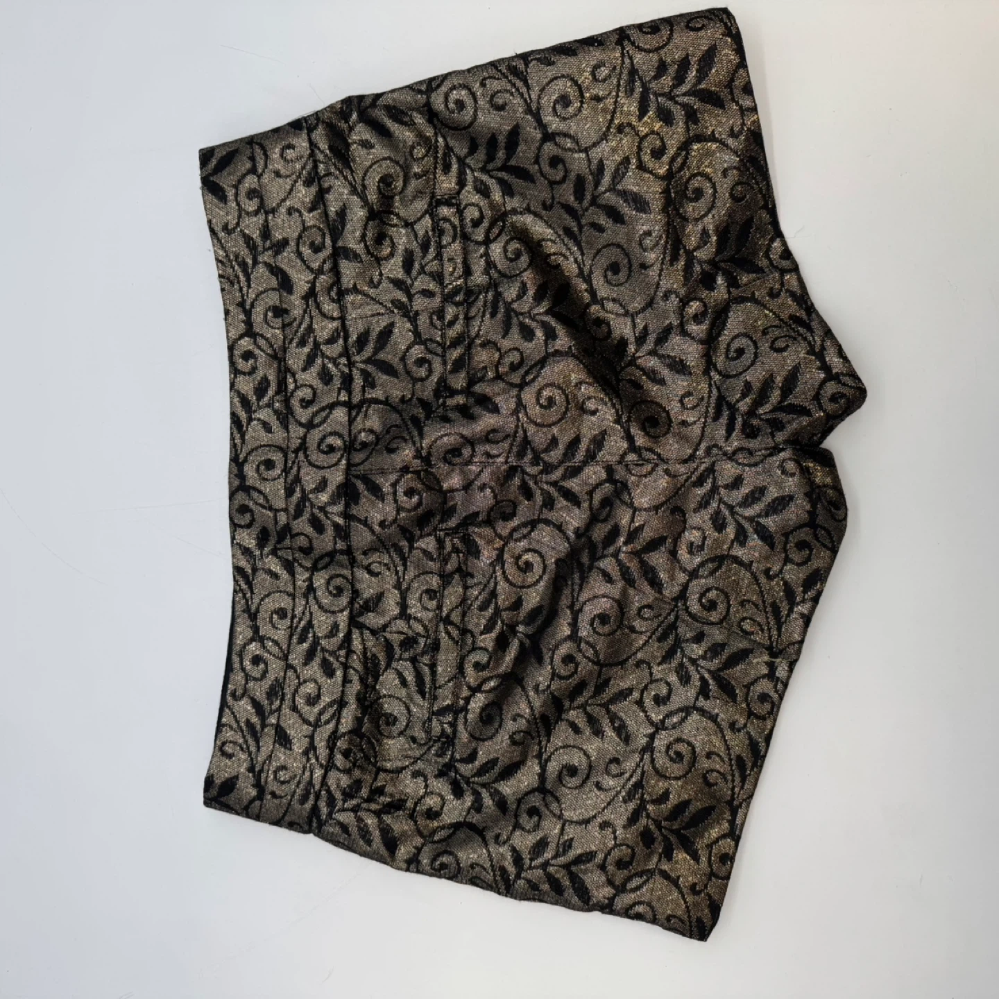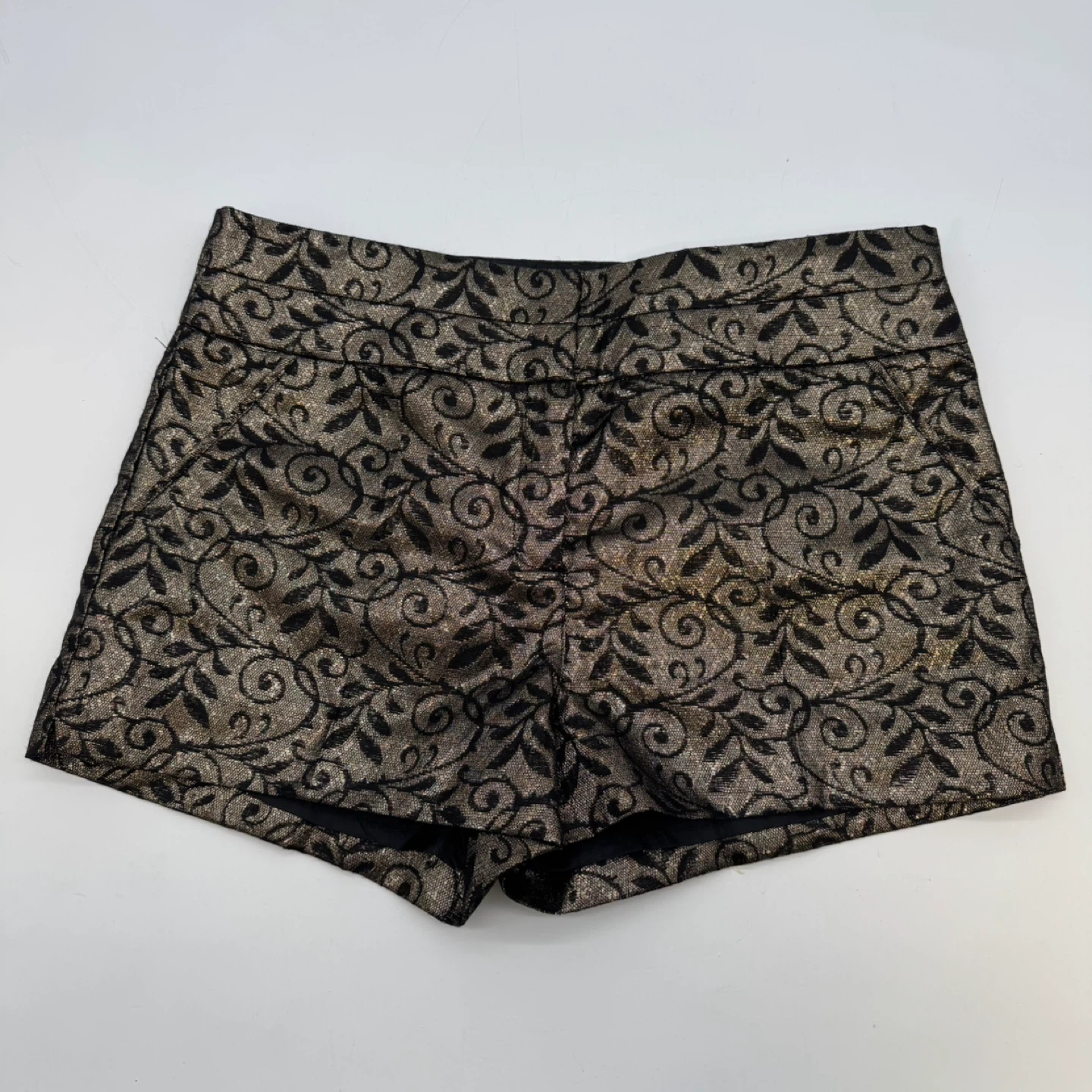Elegant high-waist shorts with metallic floral pattern. Fully lined, structured fit, perfect for evening or party wear. Please check measurements for best fit.