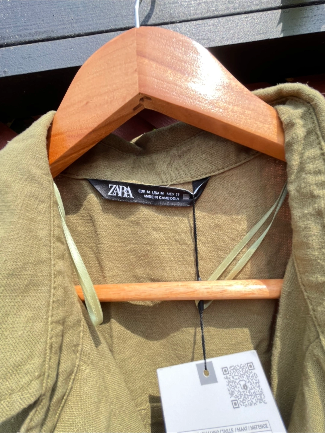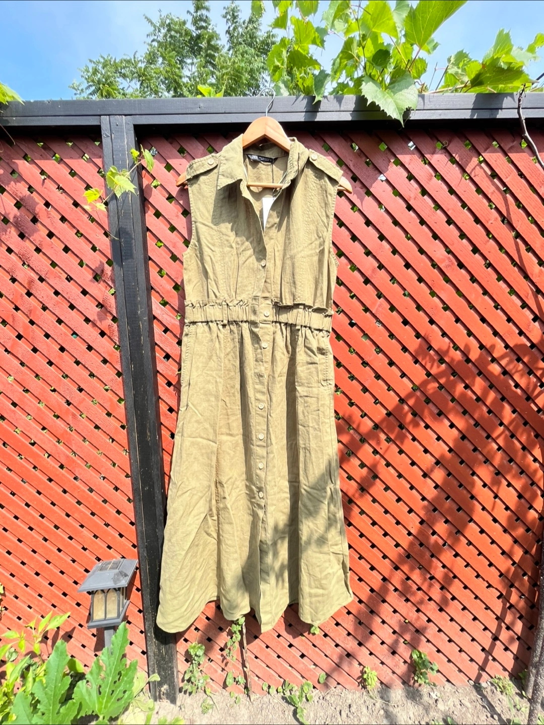 This Zara jumpsuit is in excellent condition and ready for a new home! It's a stylish olive green colour and a comfortable medium size. Perfect for warm weather!