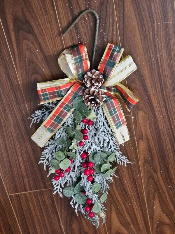 Set of Christmas decorations including a wreath, door hangers and sets of ornaments. All items are new, never used.