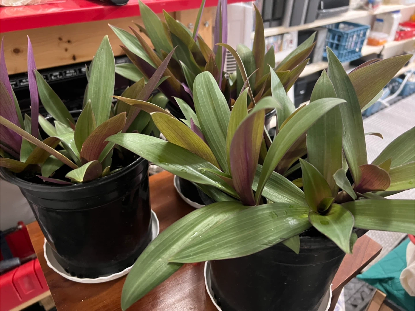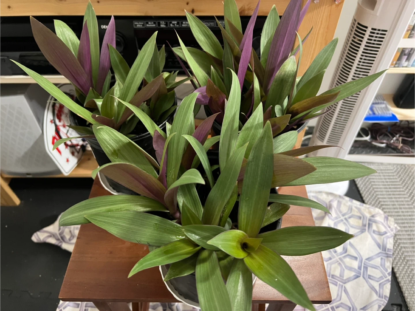 18Also called Moses-in-a-cradle plant Easy maintenance indoor plants At least 5 well rooted plants in 1 gallon pot…plus lots of baby plants on the root base. Green top leaf purple bottom side $5/pot