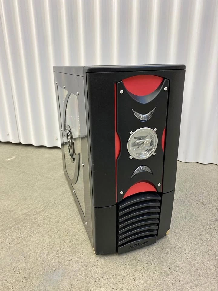 Raidmax Scorpio ATX-868WBP model case. Powers on - fans & lights work. No hard drive. Includes Ram and Asus P4C800-E Deluxe motherboard. Sold as is for parts.