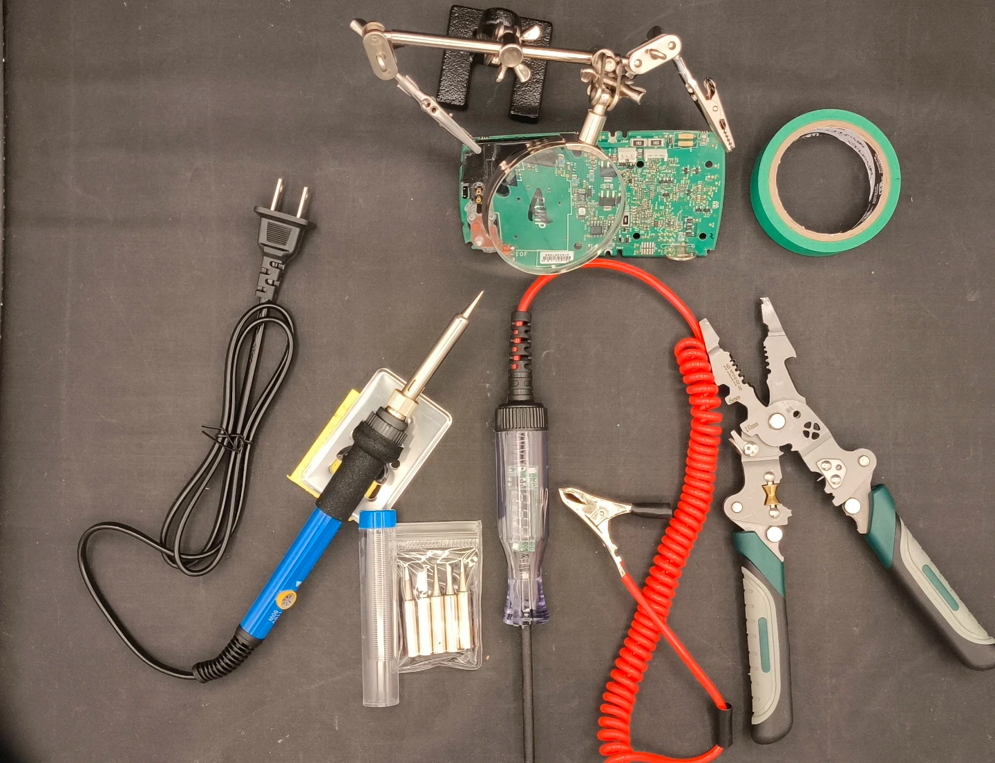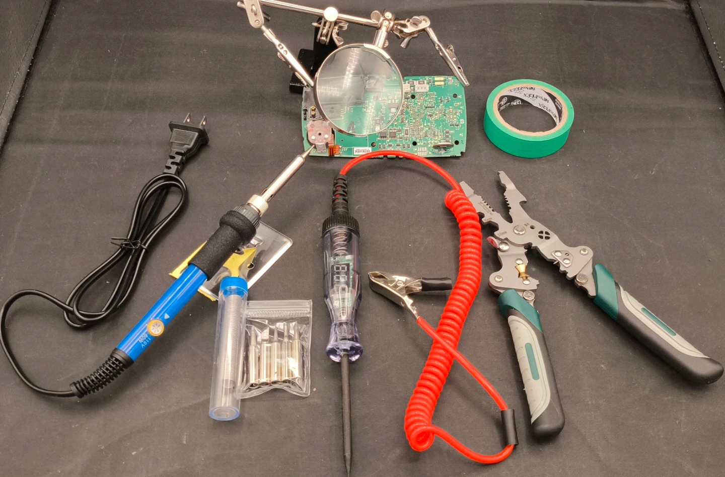 60W Adjustable Soldering Iron + Voltage Tester + Multi Tool + Helping Hands Magnifier
