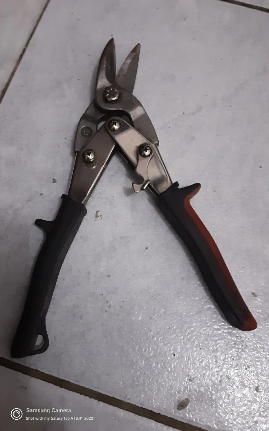 Durable tin snips for cutting sheet metal. These aviation snips are designed for ease of use. They feature comfortable, non-slip handles for a secure grip. Blades are sharp and ready for tough jobs!