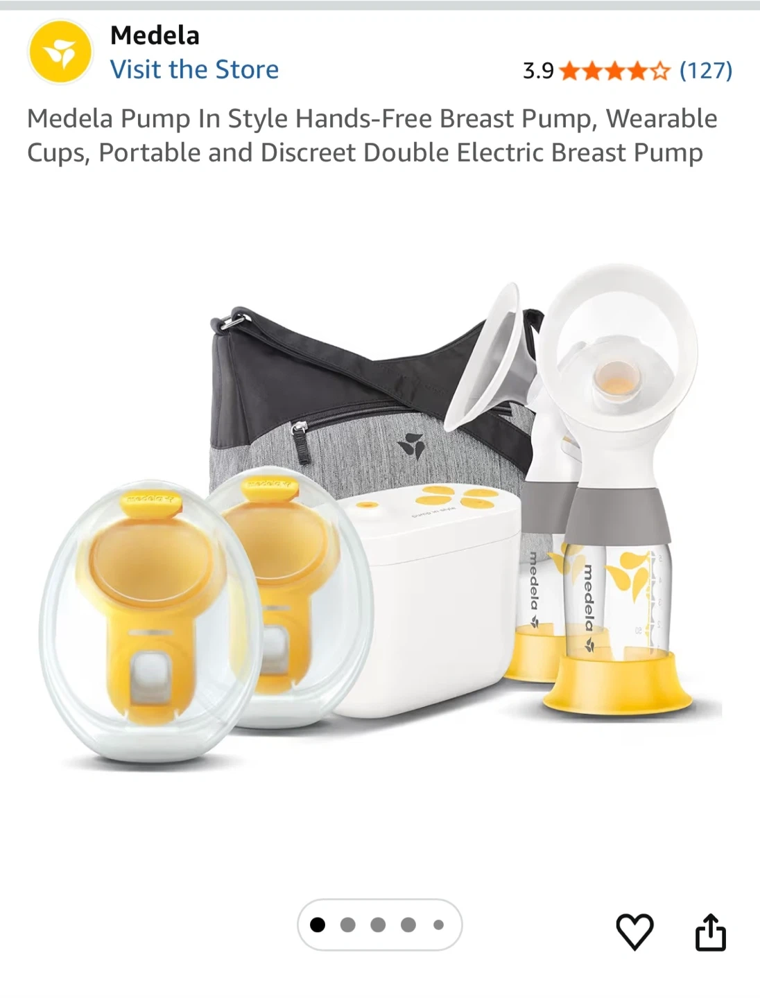 Double electric breast pump with hands free collection cups.