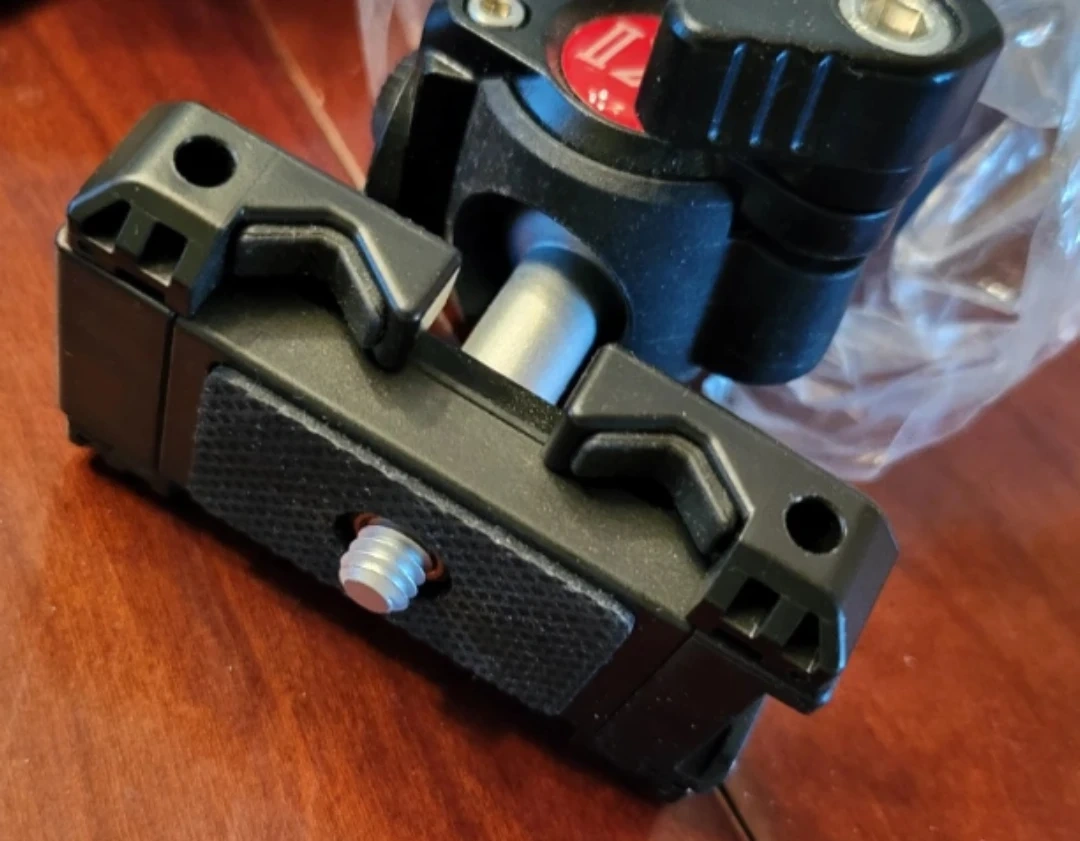 This is a new Goocong compact tripod with a quick-release mount still in packaging. It's black and made of plastic and metal. Purchased for $33 plus tax.