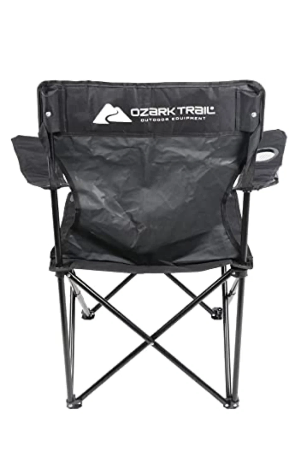 Selling a new black Ozark Trail folding camping chair! It's in great shape and perfect for camping, picnics, or just relaxing in the backyard. It's lightweight and easy to carry around, plus it folds up for convenient storage. It even has a built-in cup holder!