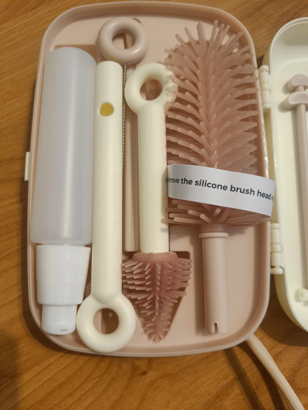This 7-in-1 travel baby bottle cleaning and drying racks set from MOMCOZY is designed for on-the-go use. It includes a travel drying tray, a portable storage box, a soap dispenser, a detachable bottle brush head, nipple brushes, and straw brushes. This set makes cleaning and drying baby bottles convenient when you're away from home.