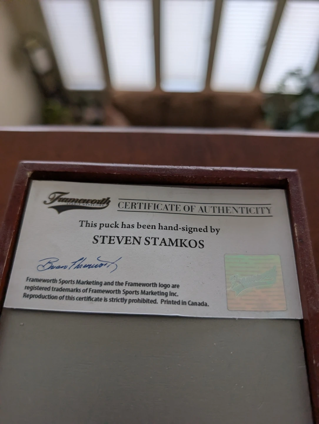 Selling a Frameworth hockey puck hand-signed by Steven Stamkos. It comes with a certificate of authenticity. The puck features the Team Canada logo.