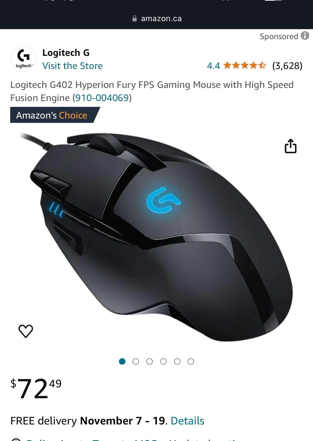 Logitech G402 Hyperion Fury FPS Gaming Mouse with High Speed Fusion Engine
