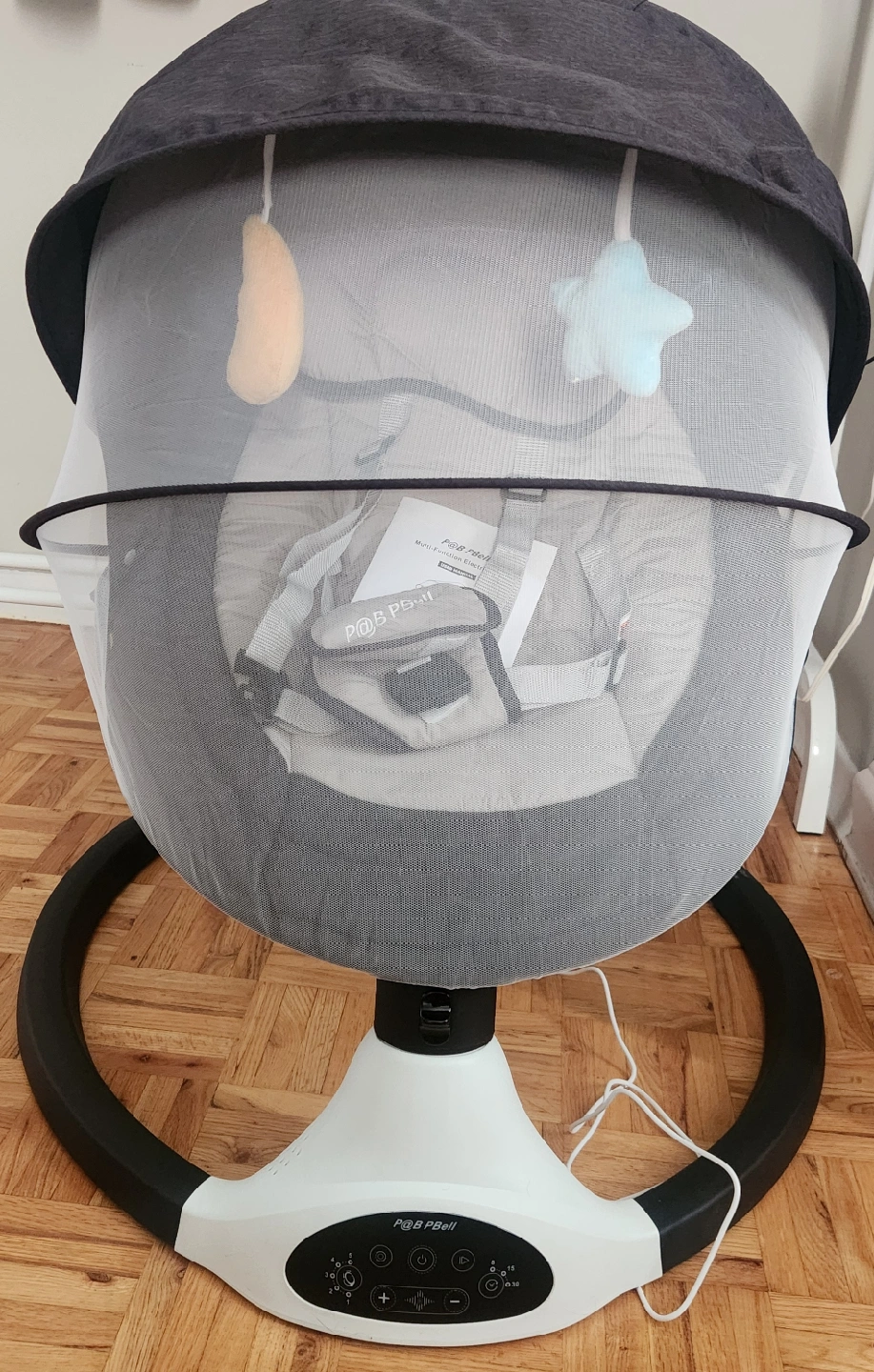 15β¨ Brand New P@B PBell Multi-Function Electric Baby Swing β¨ Soft, cozy, and designed to keep your little one calm and comfy! This swing features gentle motion, soft fabric, and built-in music to help your baby relax or nap peacefully. πΌ Never used! My baby preferred her Graco swing instead. π Fully assembled and ready to go β I can deliver locally for your convenience. Perfect for new parents looking for an easy, soothing setup for baby time!