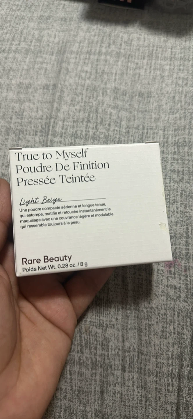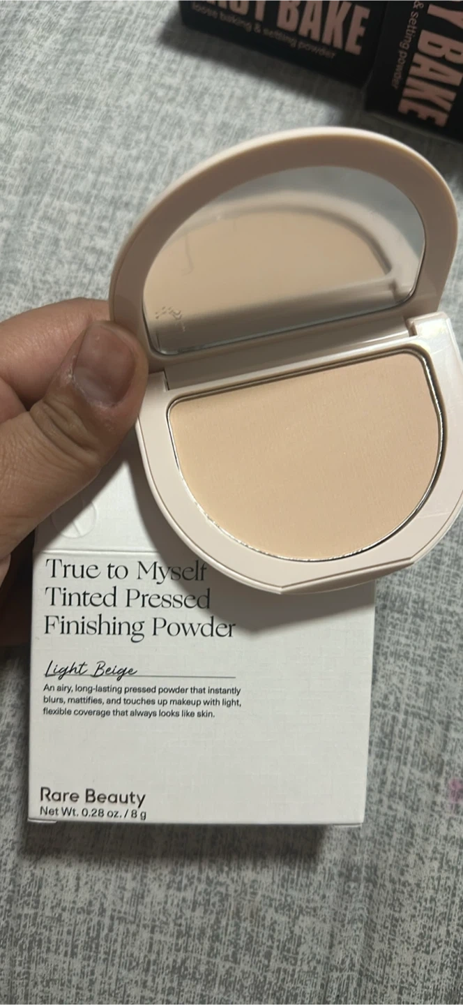 This is the Rare Beauty True to Myself Tinted Pressed Finishing Powder in Light Beige. It's an airy, long-lasting powder that instantly blurs, mattifies, and touches up makeup. Provides light, flexible coverage that looks like skin. Net Wt. 0.28 oz. / 8 g.