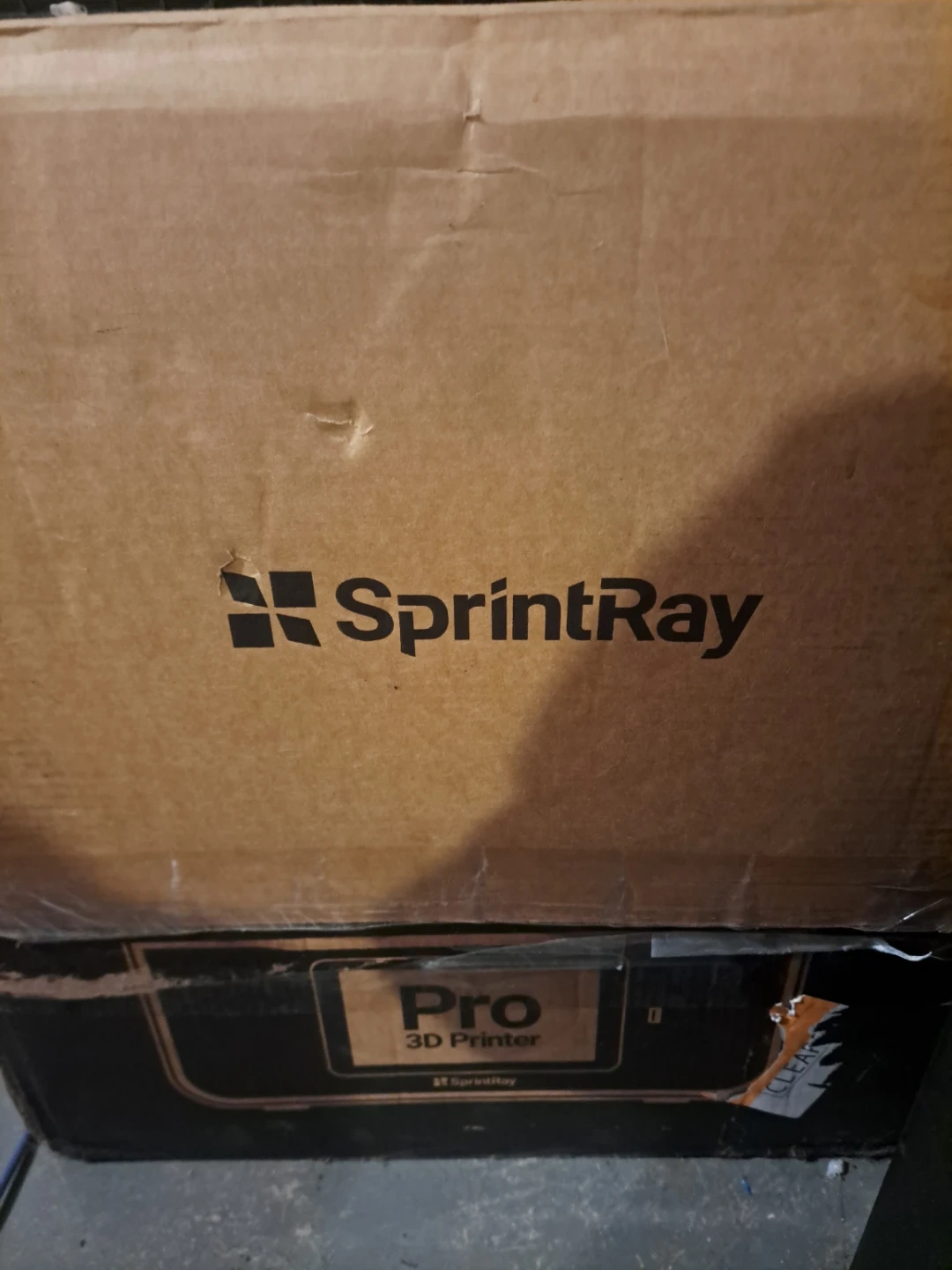 This is a SprintRay Pro 3D Printer. It's designed for professional use. The printer is in its original box. This would be useful for dental labs or custom manufacturing. NO PLATE OR TANK. PRICE OBO
