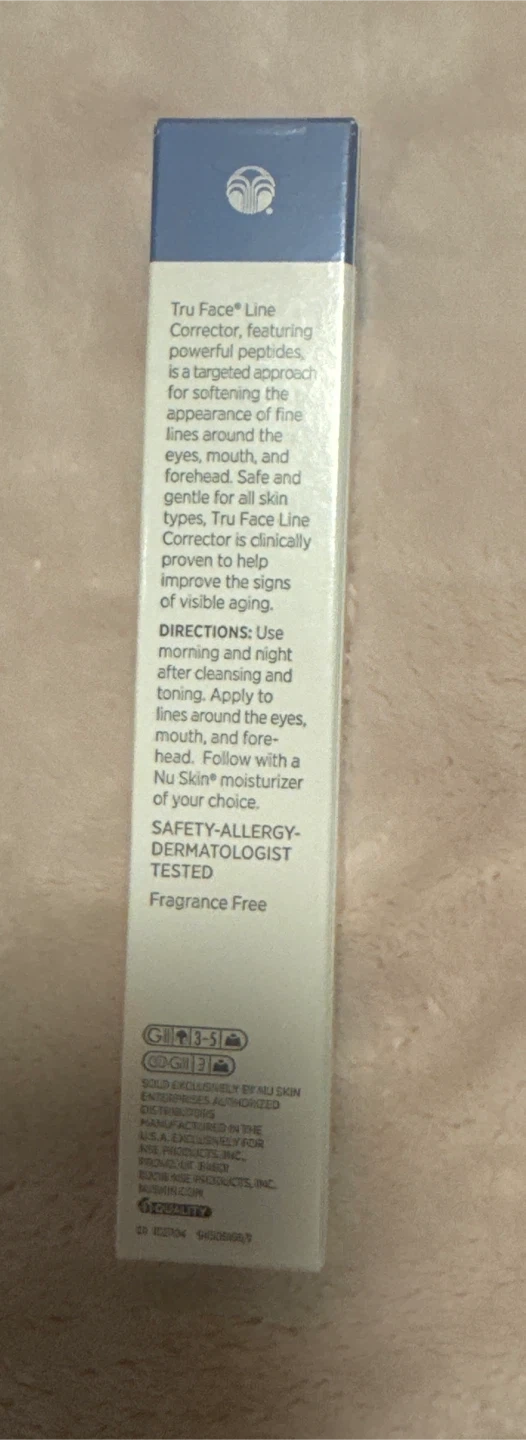 This Nu Skin Tru Face Line Corrector is a peptide refining gel for softening the appearance of fine lines. It's formulated to be used on the eyes, mouth, and forehead. Safety-allergy-dermatologist tested and fragrance-free. Retails for $78