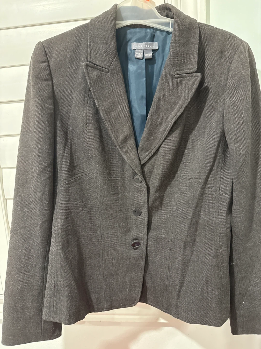 Selling an Ann Taylor blazer and pants set! The set is a nice grey colour and in great condition. Perfect for business or professional wear!