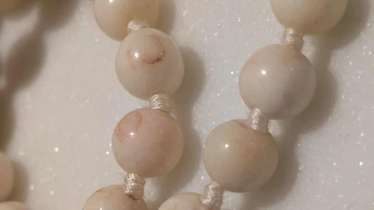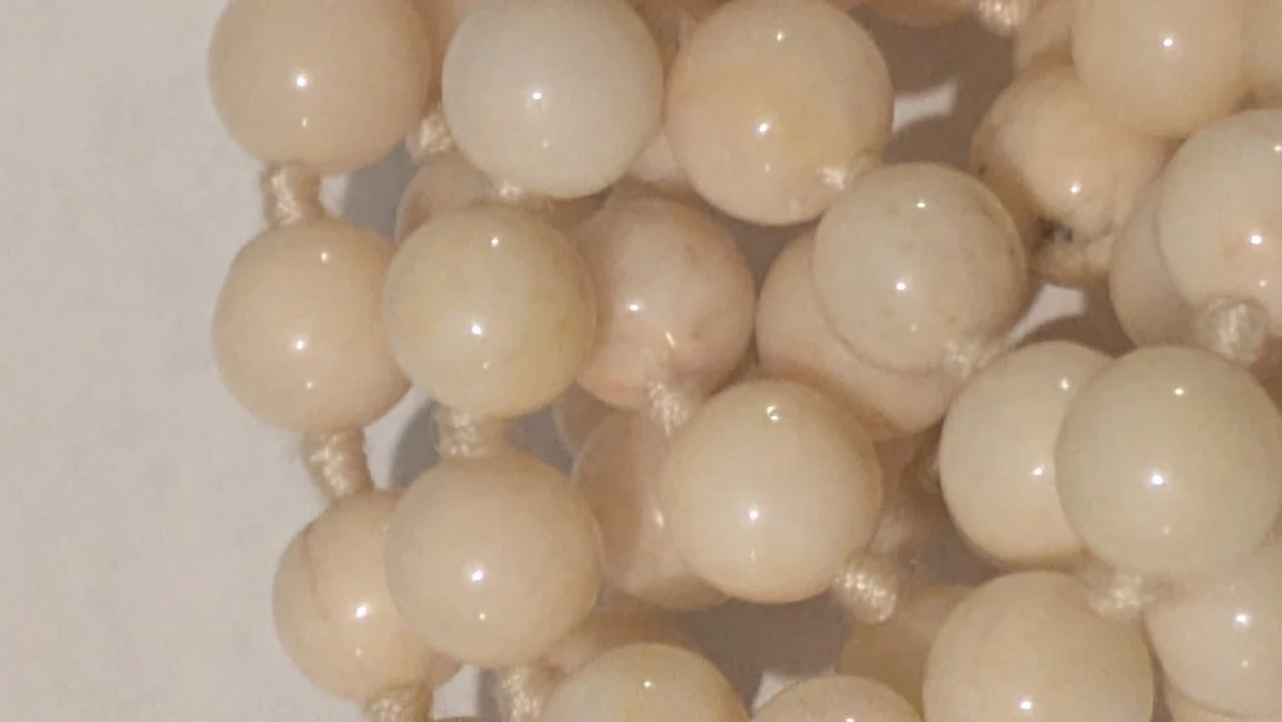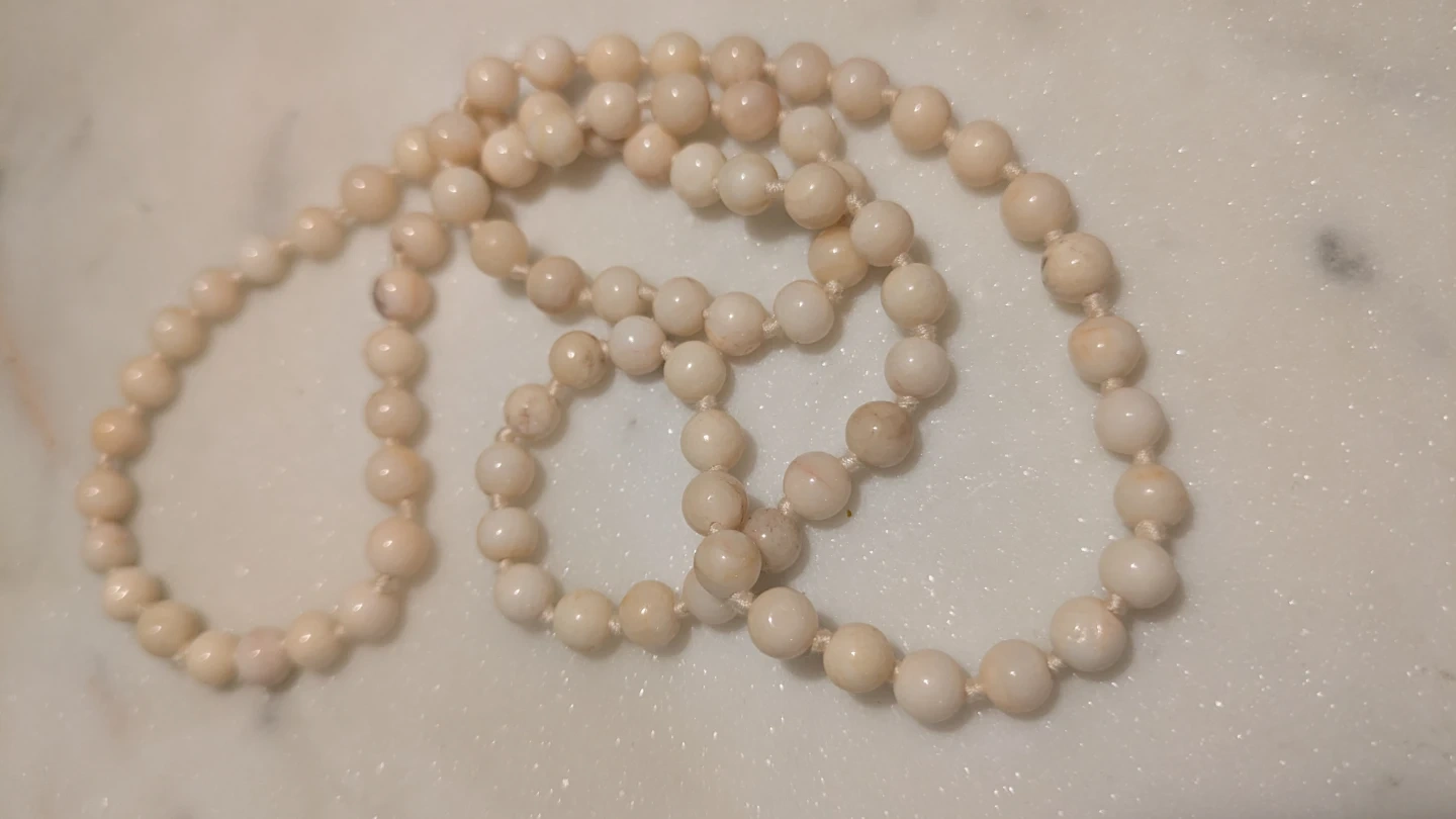 Specs: Weighs approx. 27 grams. Strung on vintage hand-knotted silk.