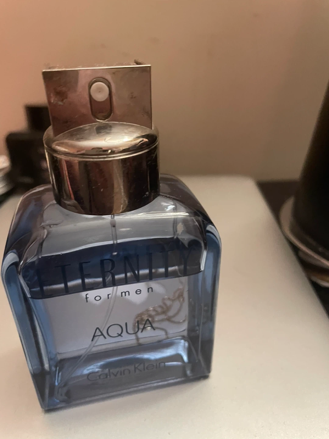 Calvin Klein Eternity Aqua for Men Eau de Toilette spray bottle. This fragrance for men features a refreshing aquatic scent. Bottle is 100ml.