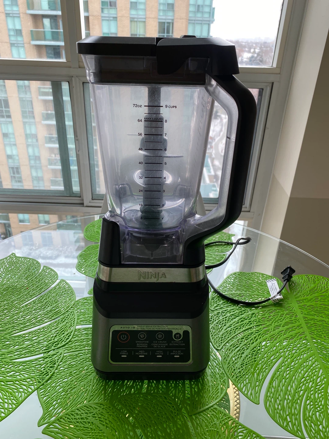 Selling a Ninja Auto-IQ blender. It has a 72oz capacity and 9 cup capacity. The blender has Auto-IQ single serve extraction settings for smoothies, ice crushing, and extracts. It is in great condition and ready for your kitchen!