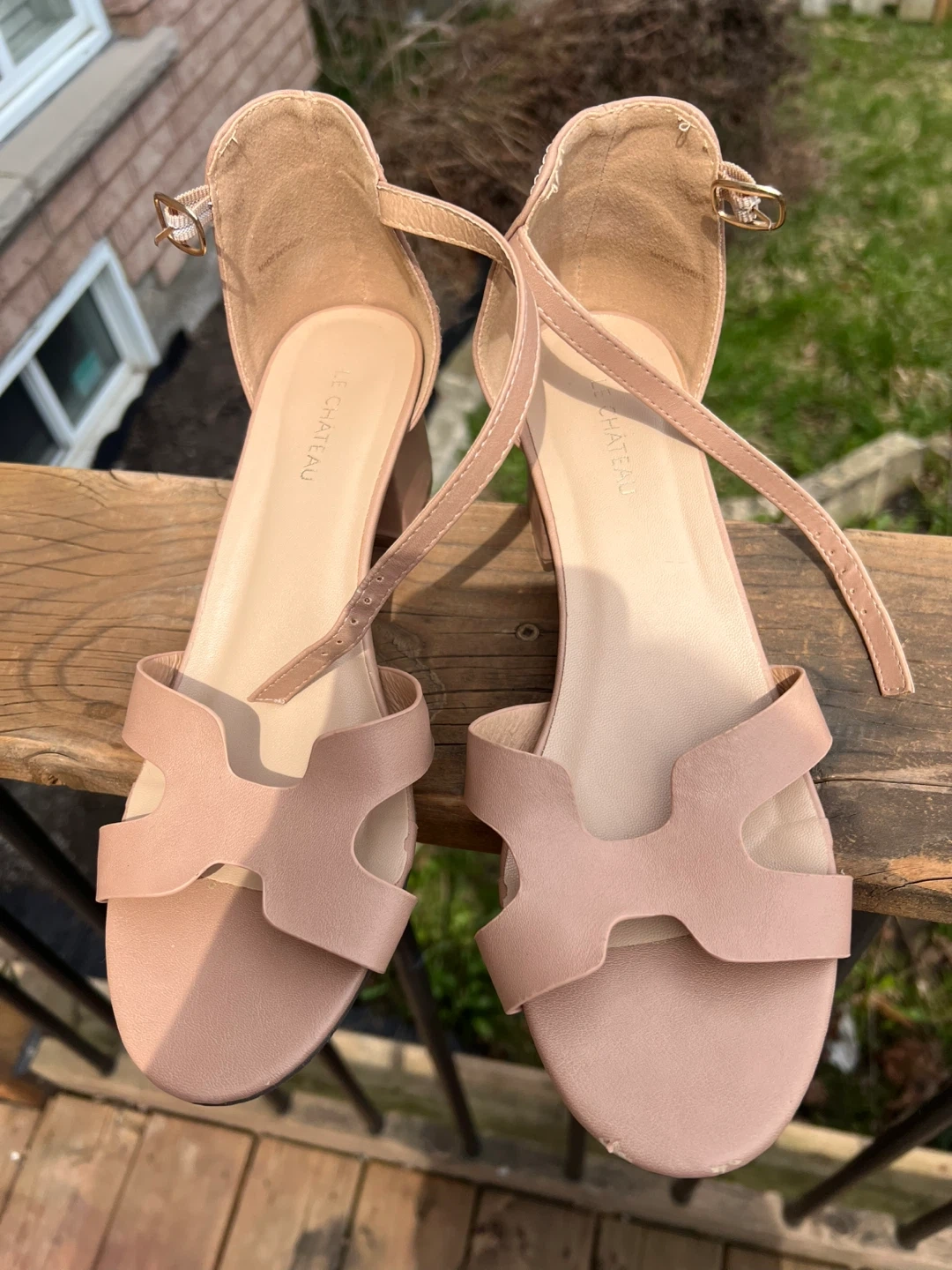 Le Chateau Nude Block Heel Sandals Size 9