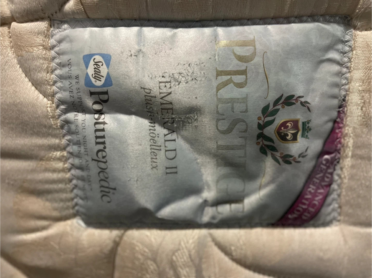 Selling a Sealy Posturepedic Emerald II plush mattress. It's in used condition but still comfy! No boxspring.