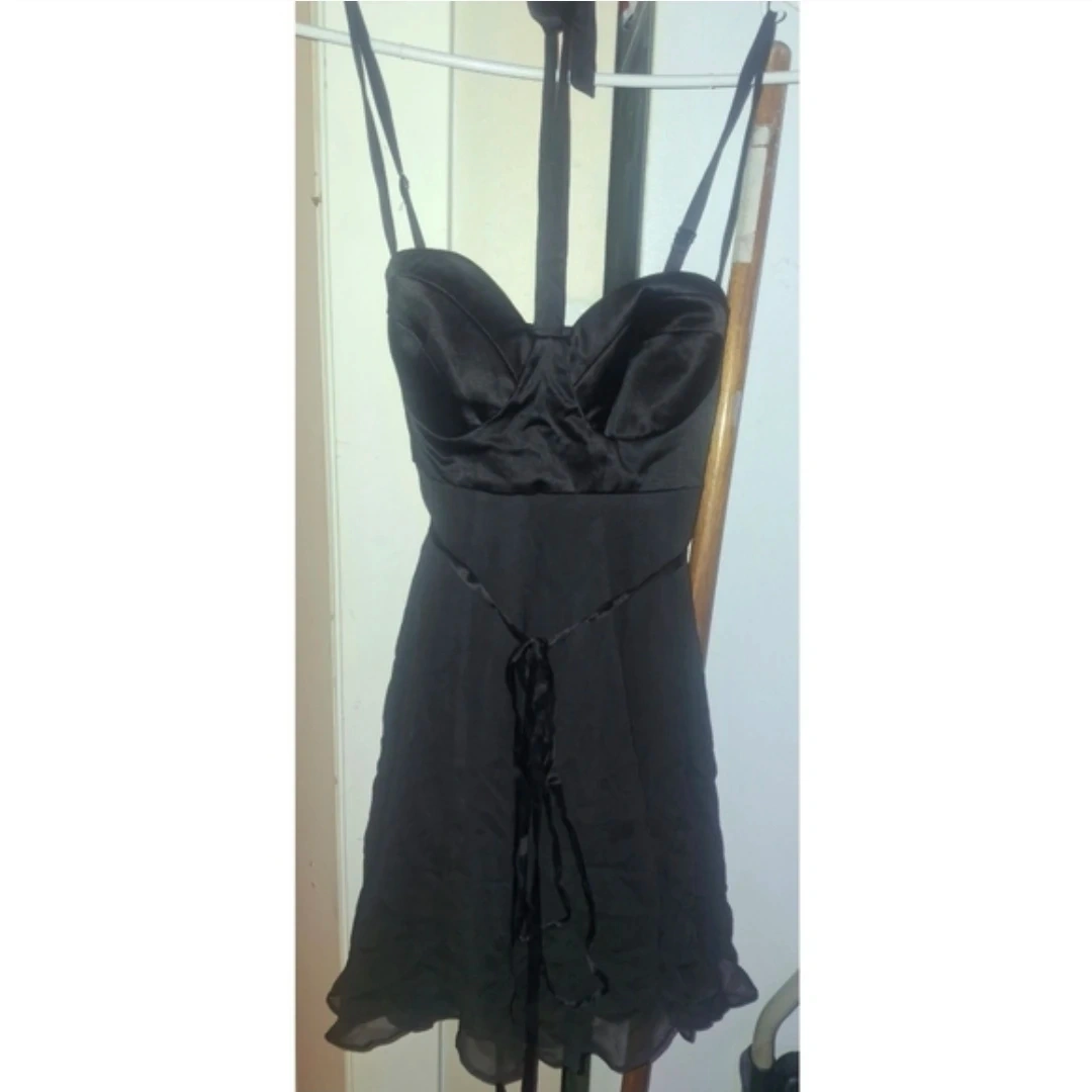 This is a NWOT vintage Silk, Polyester & Spandex Dress made by the brand BeBe from Y2K. You won't find this dress in their stores anymore! It's so Unique you'll have people's heads turning. With a sweetheart/bustier neck line and a beautiful silk , bottom that flows effortlessly as you move. The skirt is above the knee and it has a beautiful silk string that you can tie like a bow around your waist and add a Holter top silk ribbon around your neck.