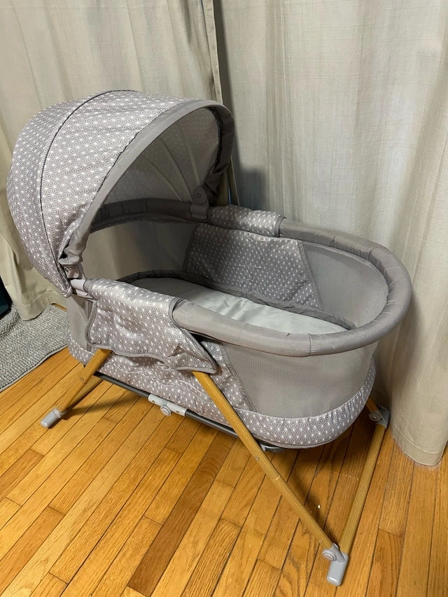 This item was barely used. My son tried it only twice, then we stored it away. Looking to give this lovely bassinet a new home! If the ad is up, it's still available, so no need to ask! Let's find a new little dreamer for this bassinet, shall we?