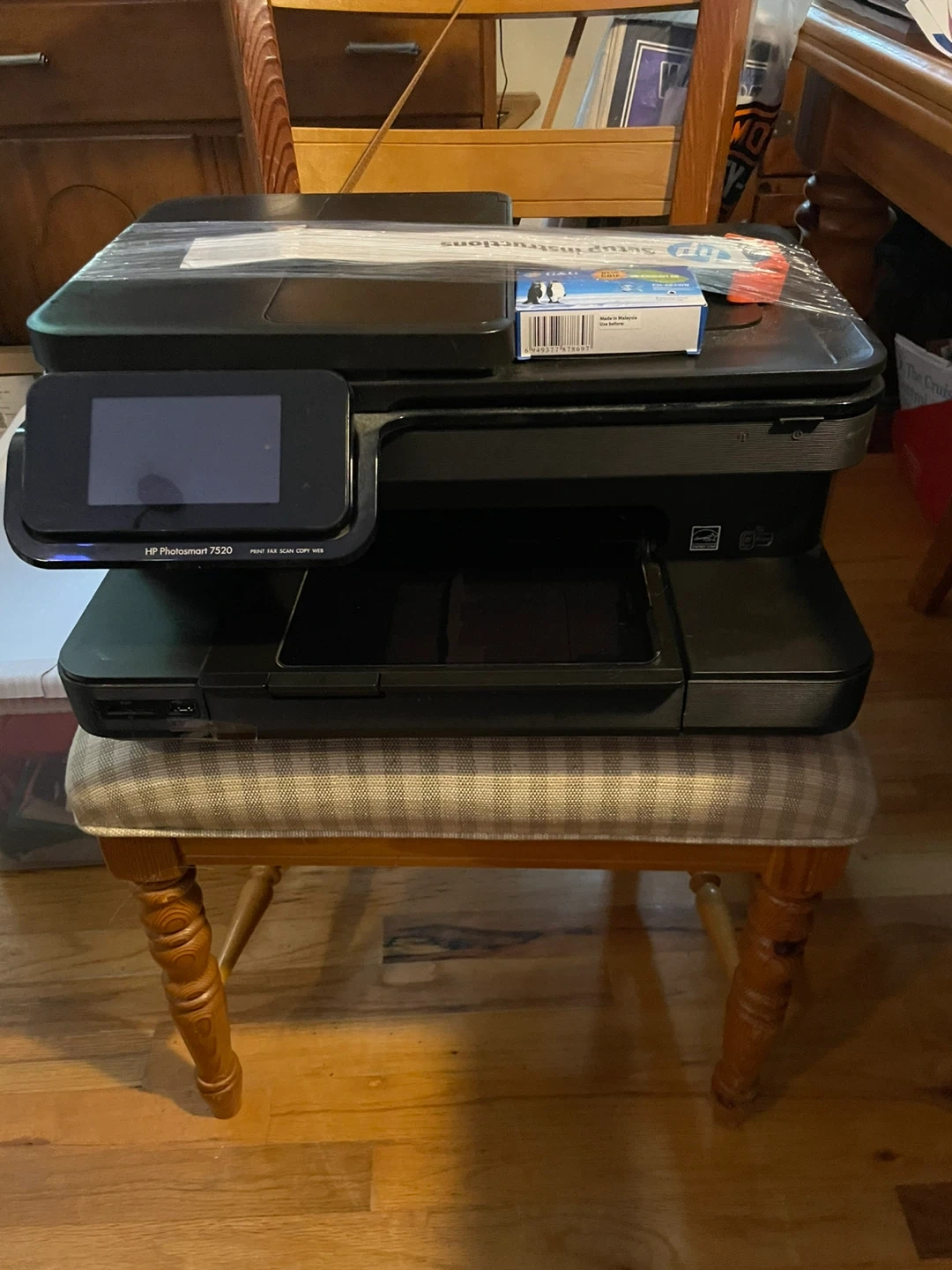 This HP Photosmart 7520 is an all-in-one printer that can print, fax, scan, and copy. It's a wireless device for easy connectivity. Includes setup instructions.