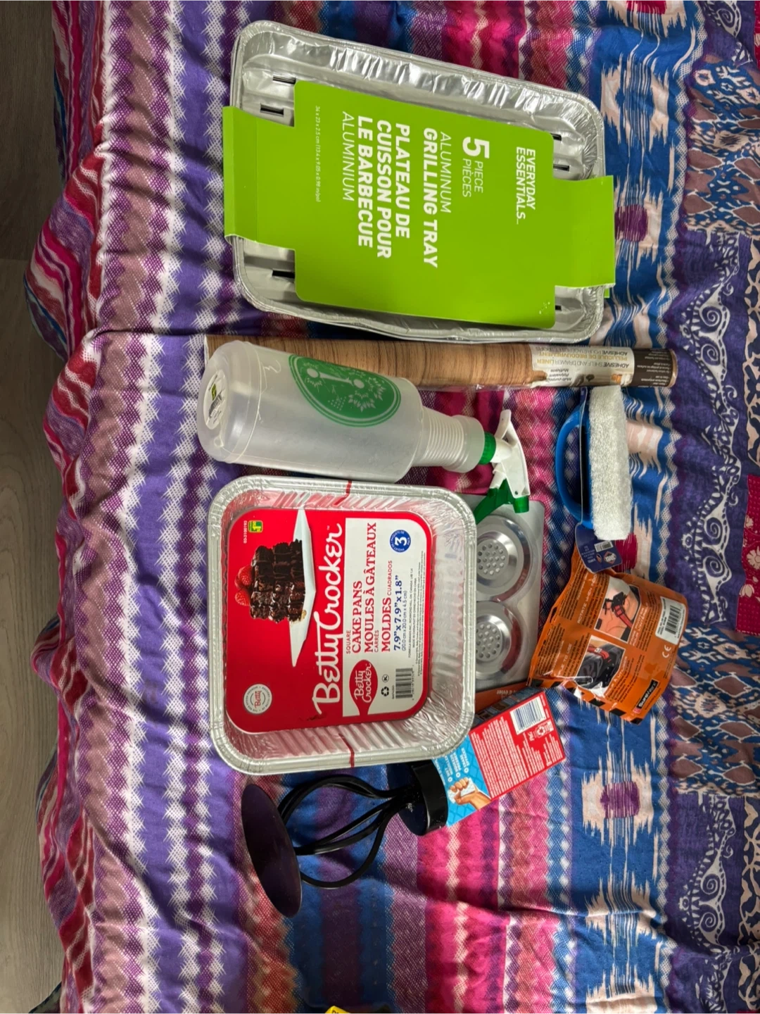 Set includes Betty Crocker square cake pans and Everyday Essentials aluminum grilling trays. Grilling trays are 5 pieces. Cake pans measure 7.9"x7.9"x1.8". These are great for baking and BBQs!. Some other stuff as shown in picture . Pick up 551 Emerson street Coquitlam. Cash only . No delivery. No e transfer