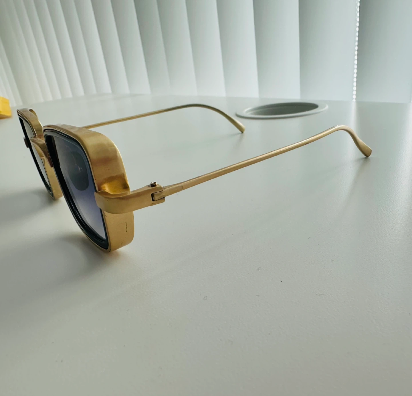 Stylish gold/brass square frame sunglasses with gradient lenses. These shades offer a modern look with a classic touch. The frames are gold-toned metal.