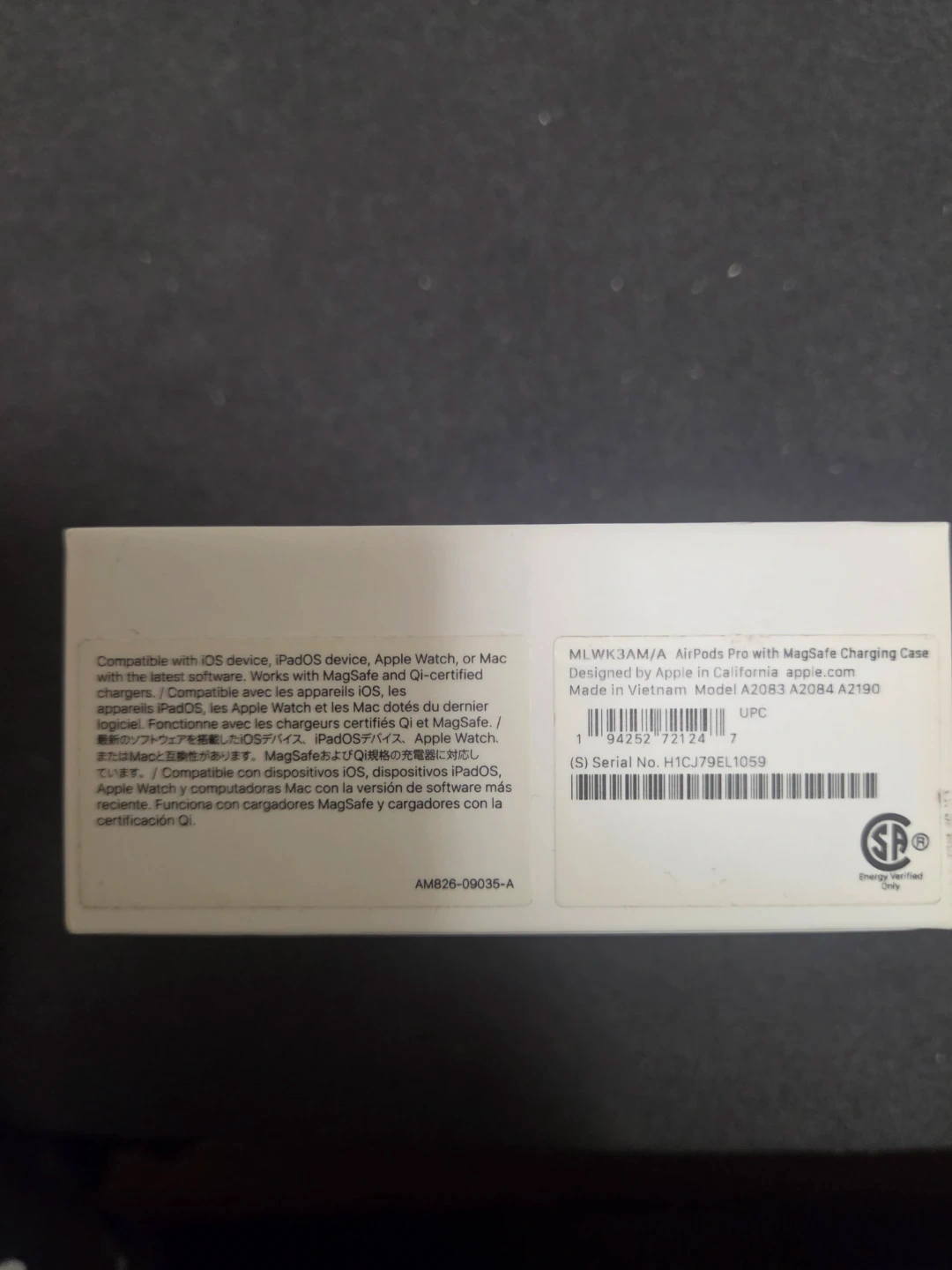 Apple AirPods Pro with MagSafe Charging Case. Model A2084 A2083 A2190. Compatible with iOS, iPadOS, Mac, and Apple Watch devices. Includes original box and all components.