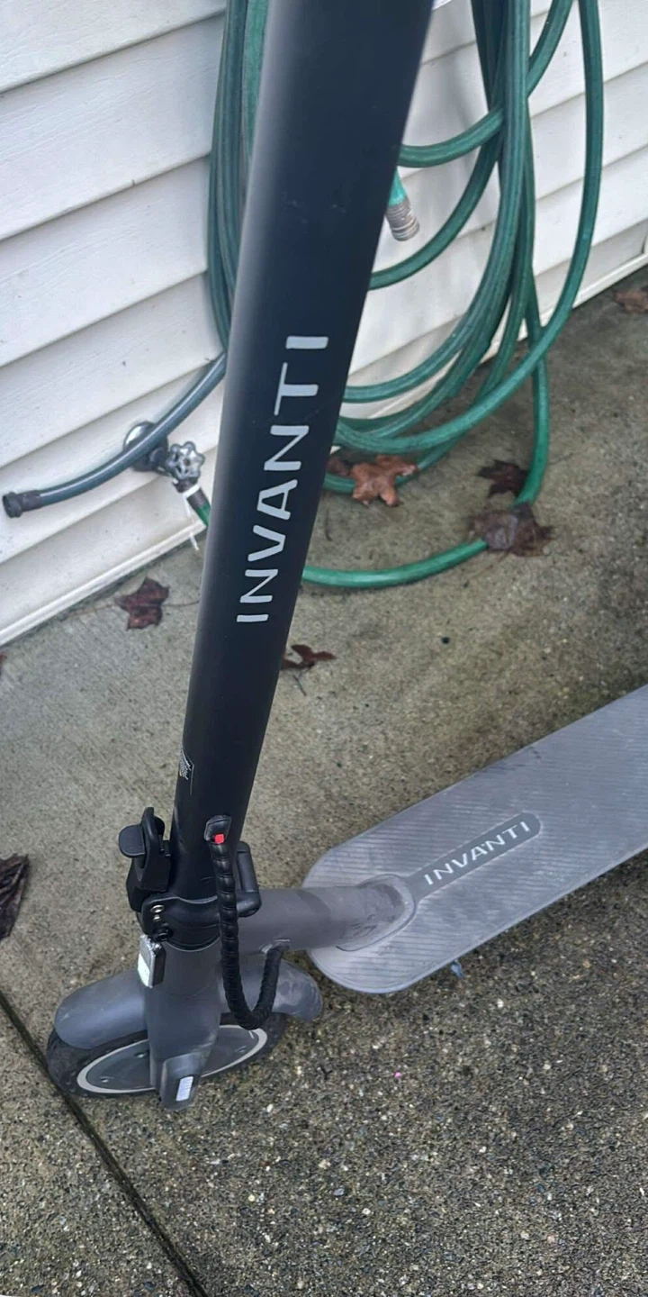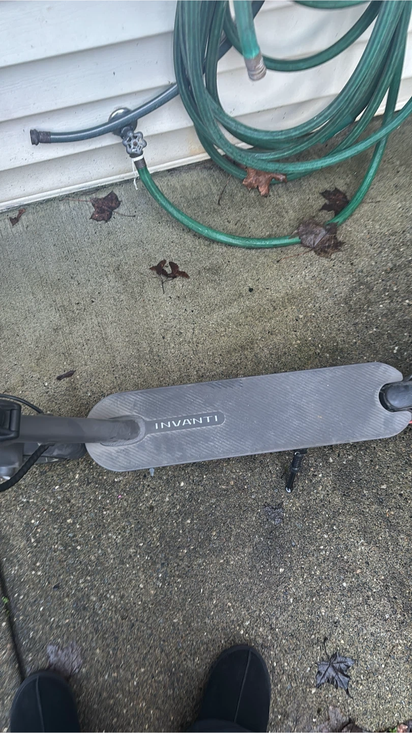 Invanti electric scooter for sale. It's black and grey with a kickstand. Perfect for getting around town! It goes 32 km an hour. I can clean it if you want.