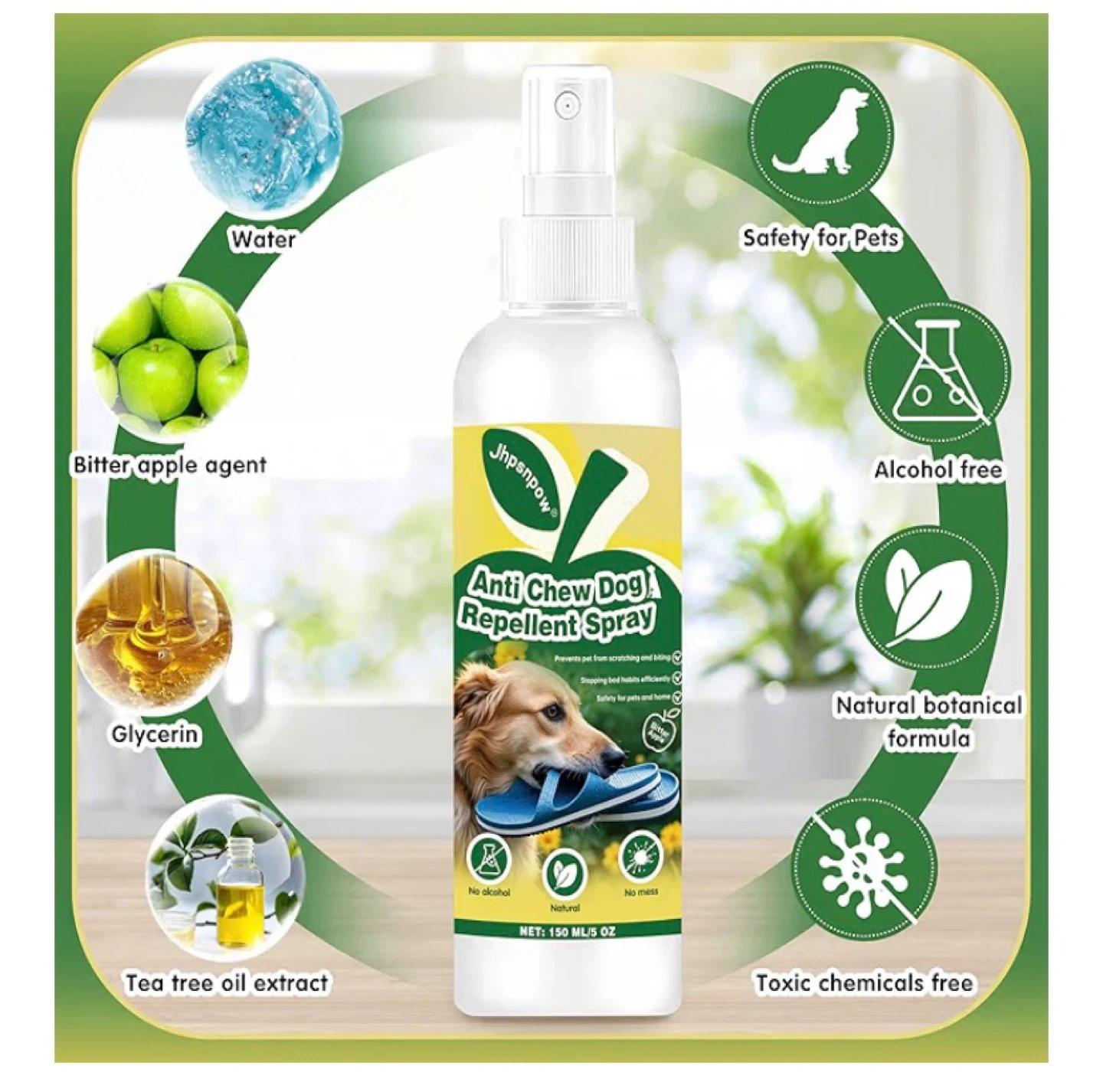 This is a new unopened Anti Chew Dog Repellent Spray. It's a natural formula safe for pets and people. It helps prevent pets from scratching, biting, and urinating. Expiry date 04/2027