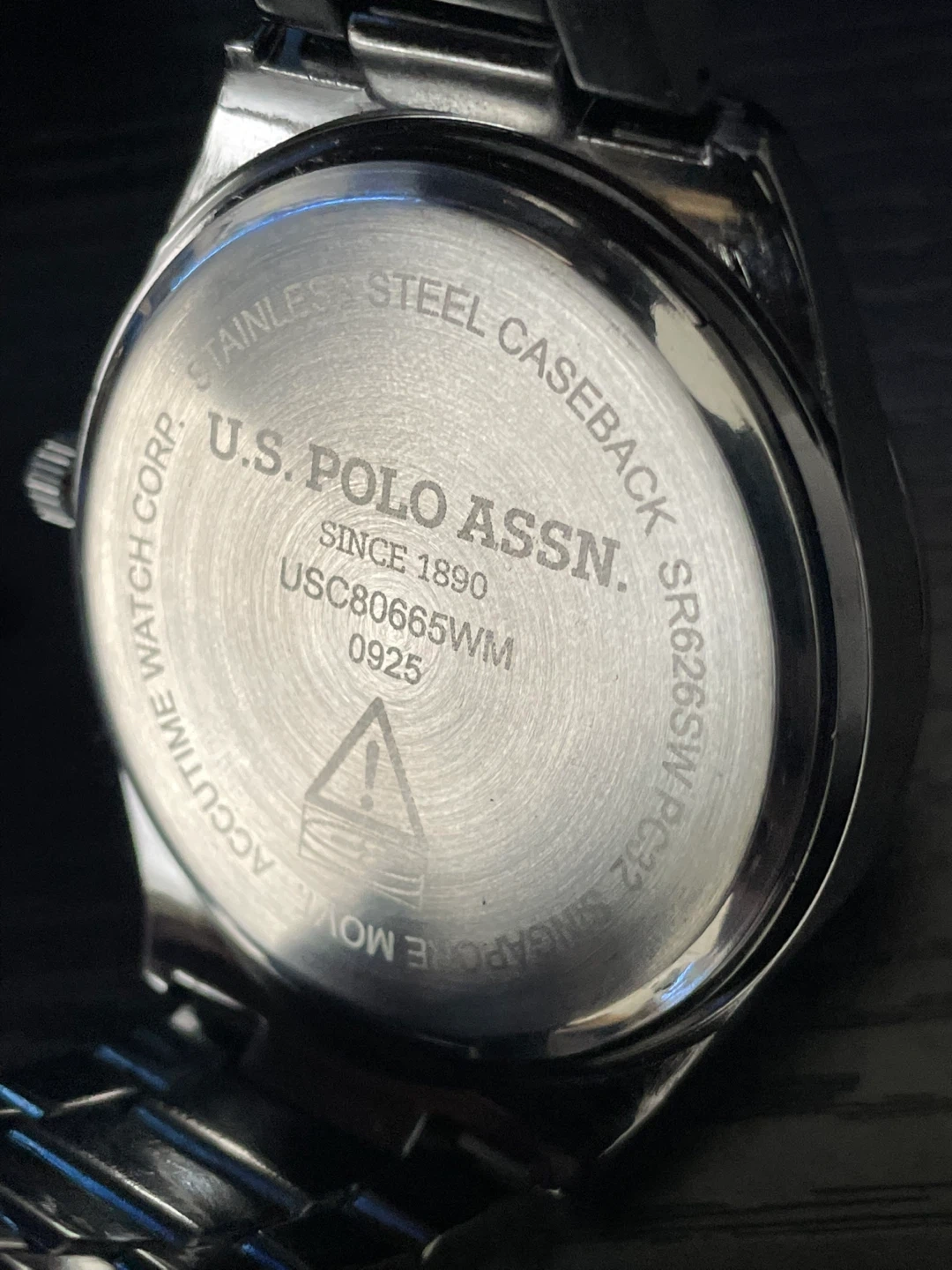 Delivery in Hamilton will cost 5 extra depending where you are. U.S. Polo Assn. watch with a diamond accent. Stainless steel caseback and band. Model USC80665WM.