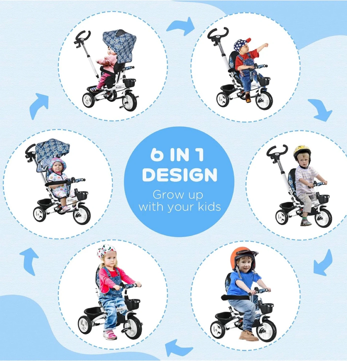 Qaba 6-in-1 Toddler Tricycle with Parent Handle