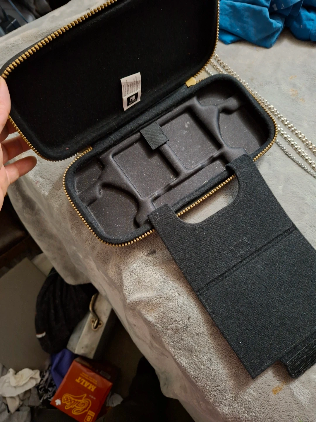 This is a green limited edition carrying case for The Legend of Zelda: Tears of the Kingdom. It has a zippered closure and an interior insert for organizing your items. A separate reinforced strap holds items securely. Can deliver langley to vancouver.