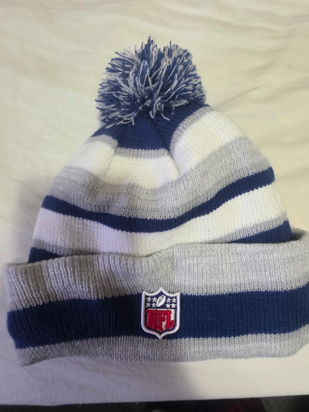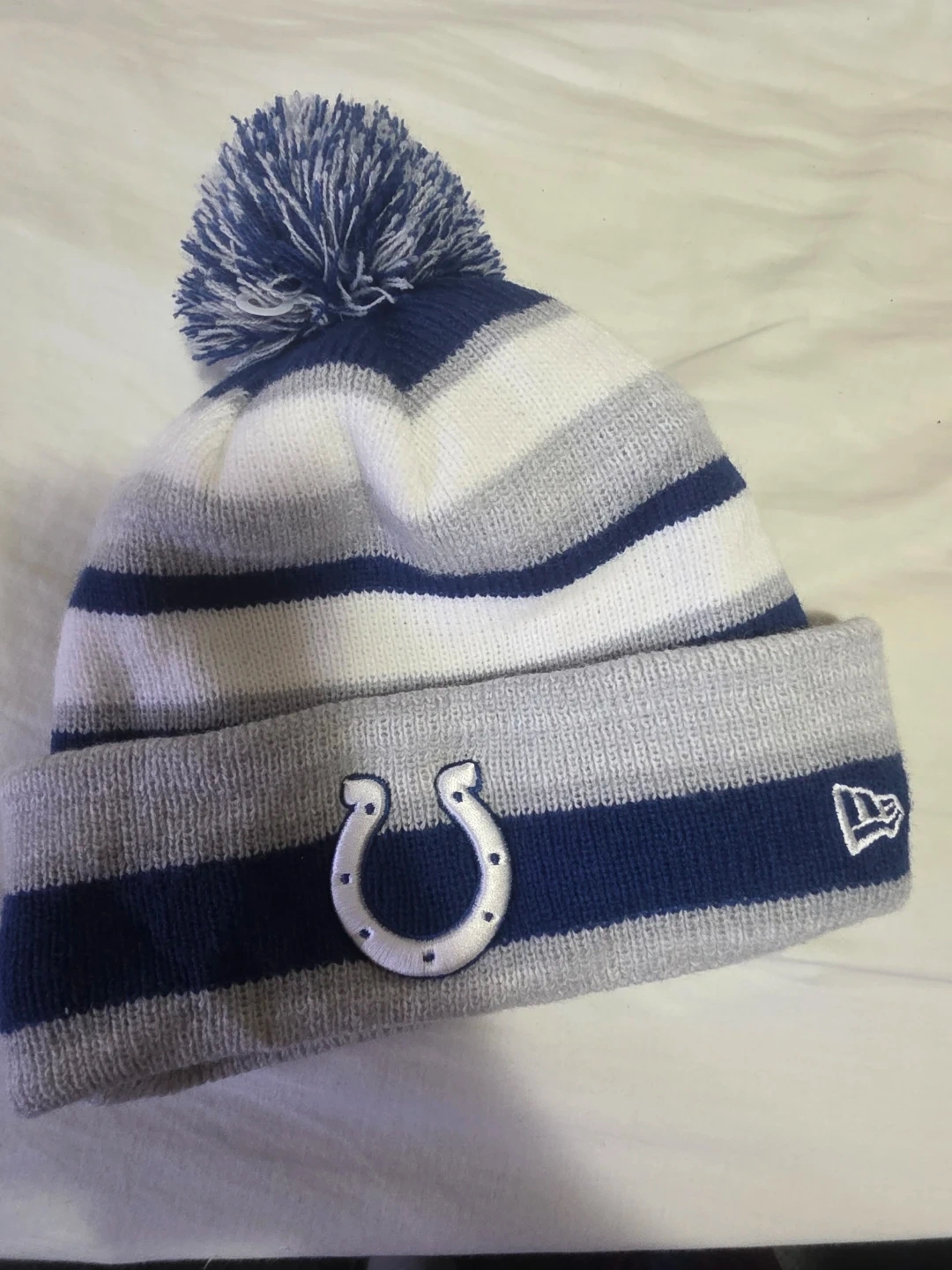 Show your support for the Indianapolis Colts with this New Era pom beanie. It features the team's logo and the NFL shield. This knit hat is perfect for staying warm on game days or any cold day!