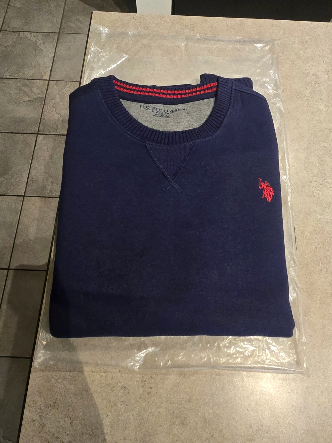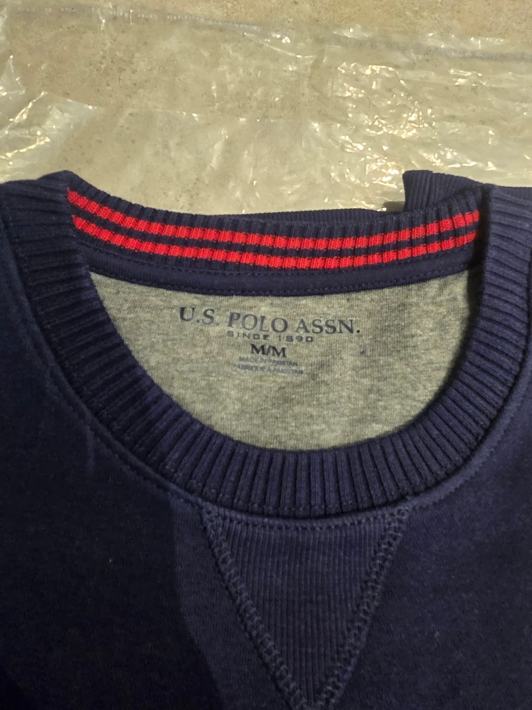 U.S. Polo Assn. crew neck sweatshirt in navy. It's a size medium. The sweatshirt features the iconic red polo player logo on the chest. !