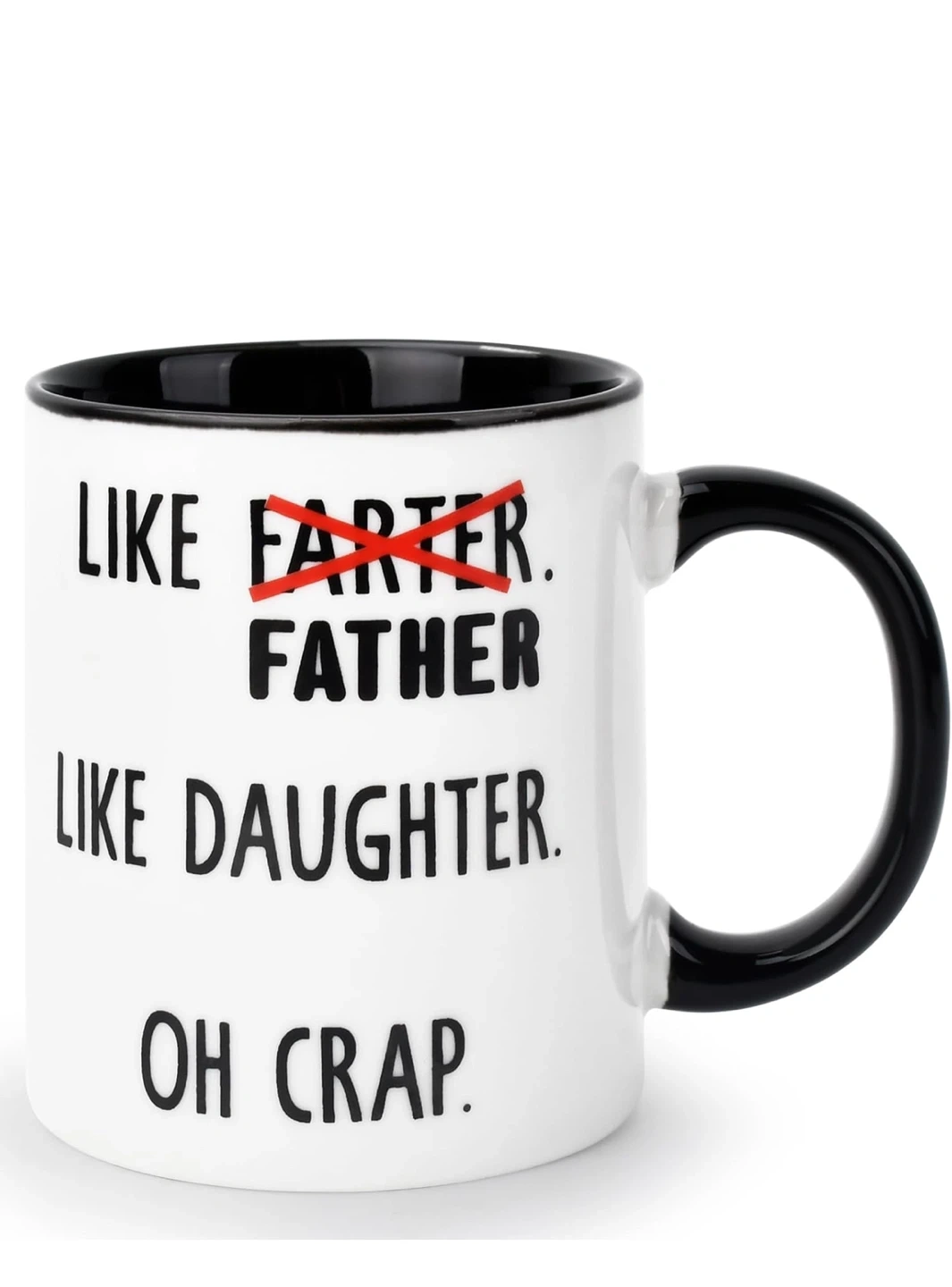 It features the text "Like FARTER. FATHER, Like DAUGHTER. OH CRAP." on one side.