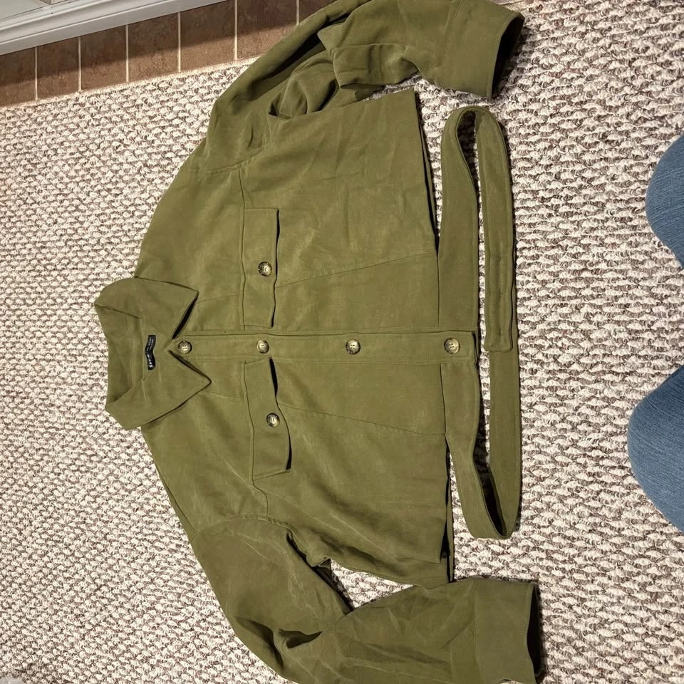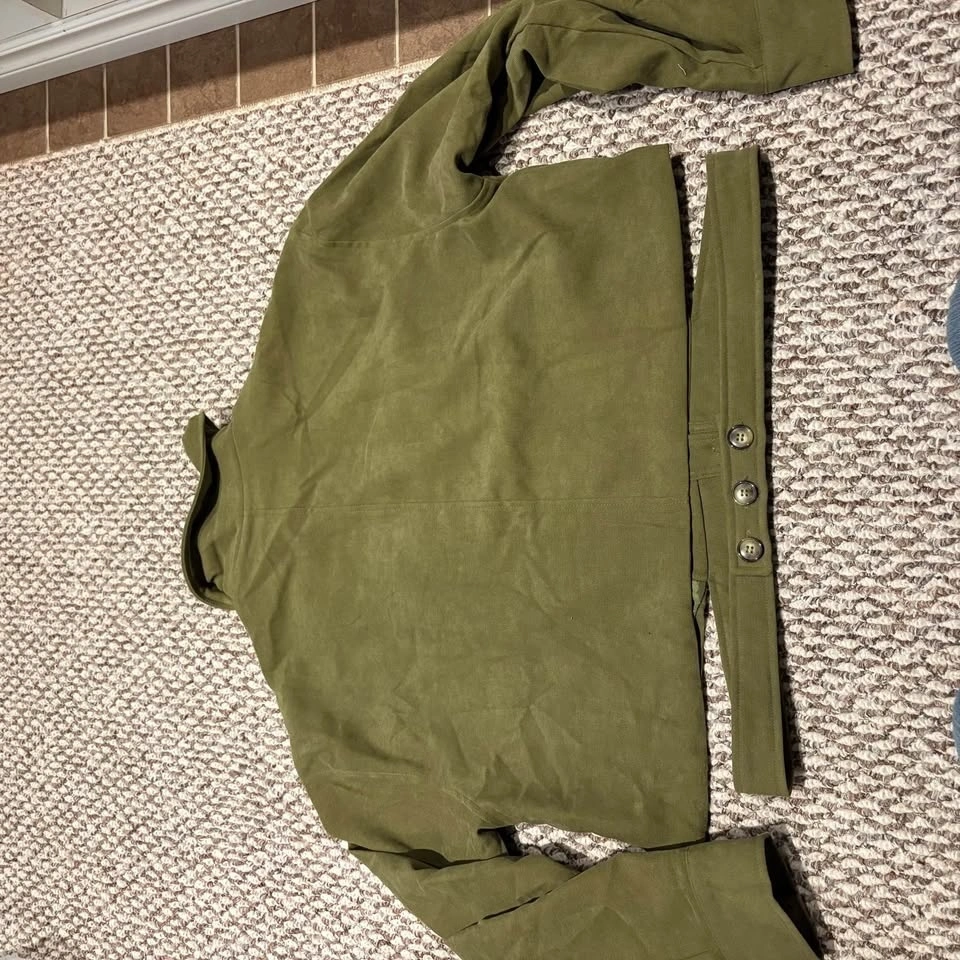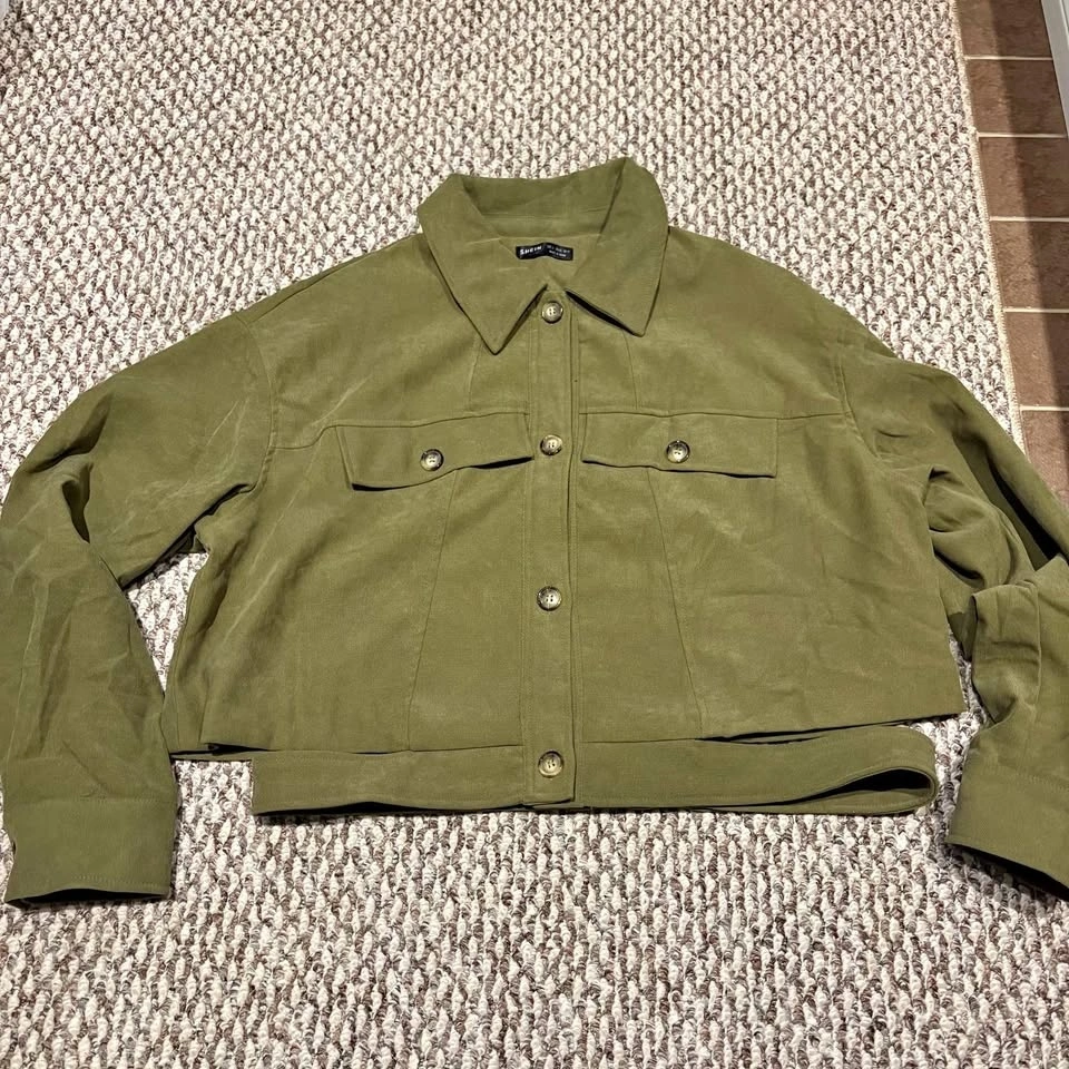 Chic crop utility jacket with button front. Features dual chest pockets. Perfect for everyday style. Size XL Pit to pit 25.5”