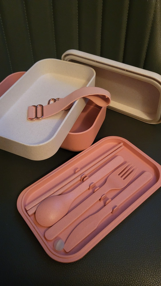 🧡Pink & Beige Bento Lunch Box with Cutlery