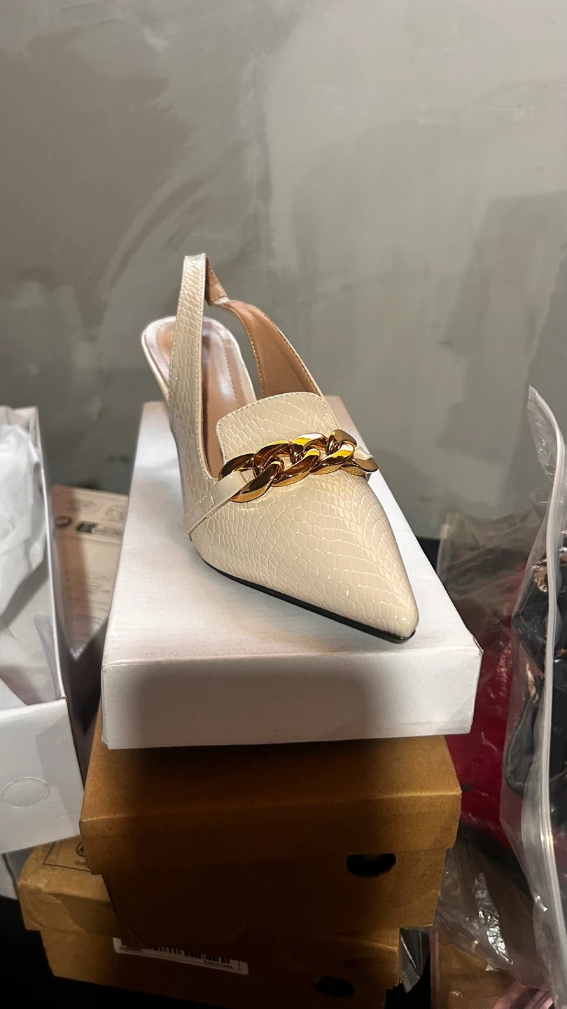 Women's Cream Slingback Heels with Chain Detail