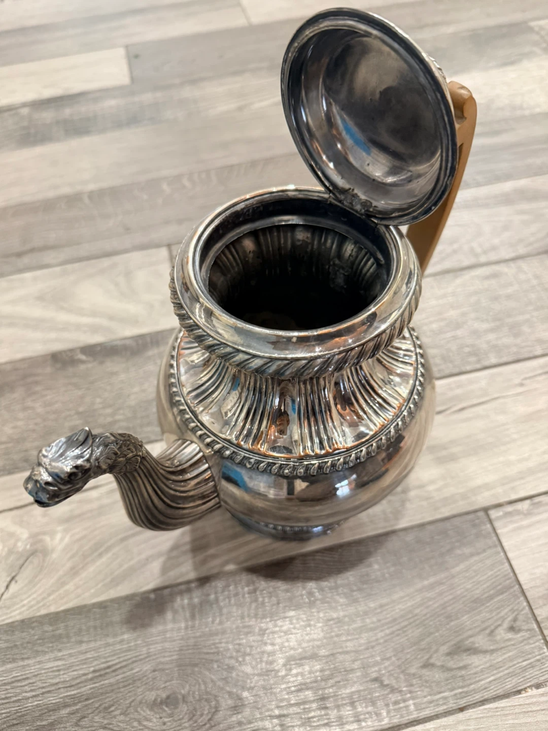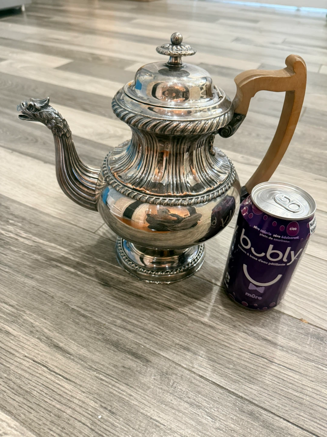 Buy & SellVintage Silver Teapot with Dragon SpoutVintage Silver Teapot with Dragon Spout$32Selling a unique antique silver plated teapot! It features a distinctive dragon spout and a wooden handle.ConditionGoodWHERE TO MEETCheck LocationView MapSELLERverifiedKorinnaBedford Park19219 reviews3 chats·6 favorites·93 viewsSEND CHAT TO SELLERHi Korinna! I’m interested in your listing.Hi Korinna! I’m interested in your listing.Get the Karrot app to chatSign In to chat