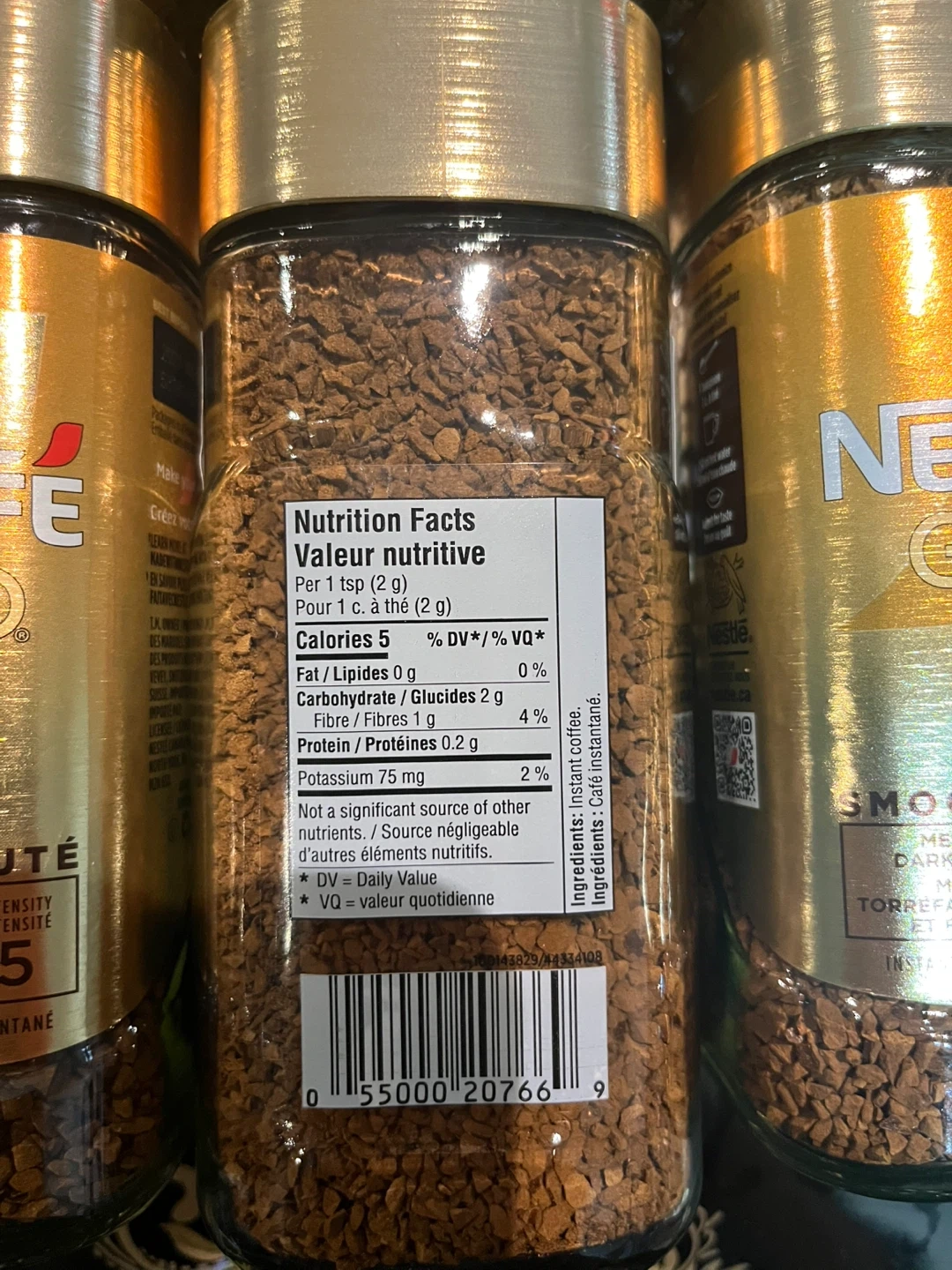 Nescafé Gold Smooth Velouté is a medium & rich dark roast blend. It's an instant coffee with an intensity of 5. Each jar contains 100g of coffee. This coffee is great for a quick and easy cup anytime! (24 pcs available $6 each)