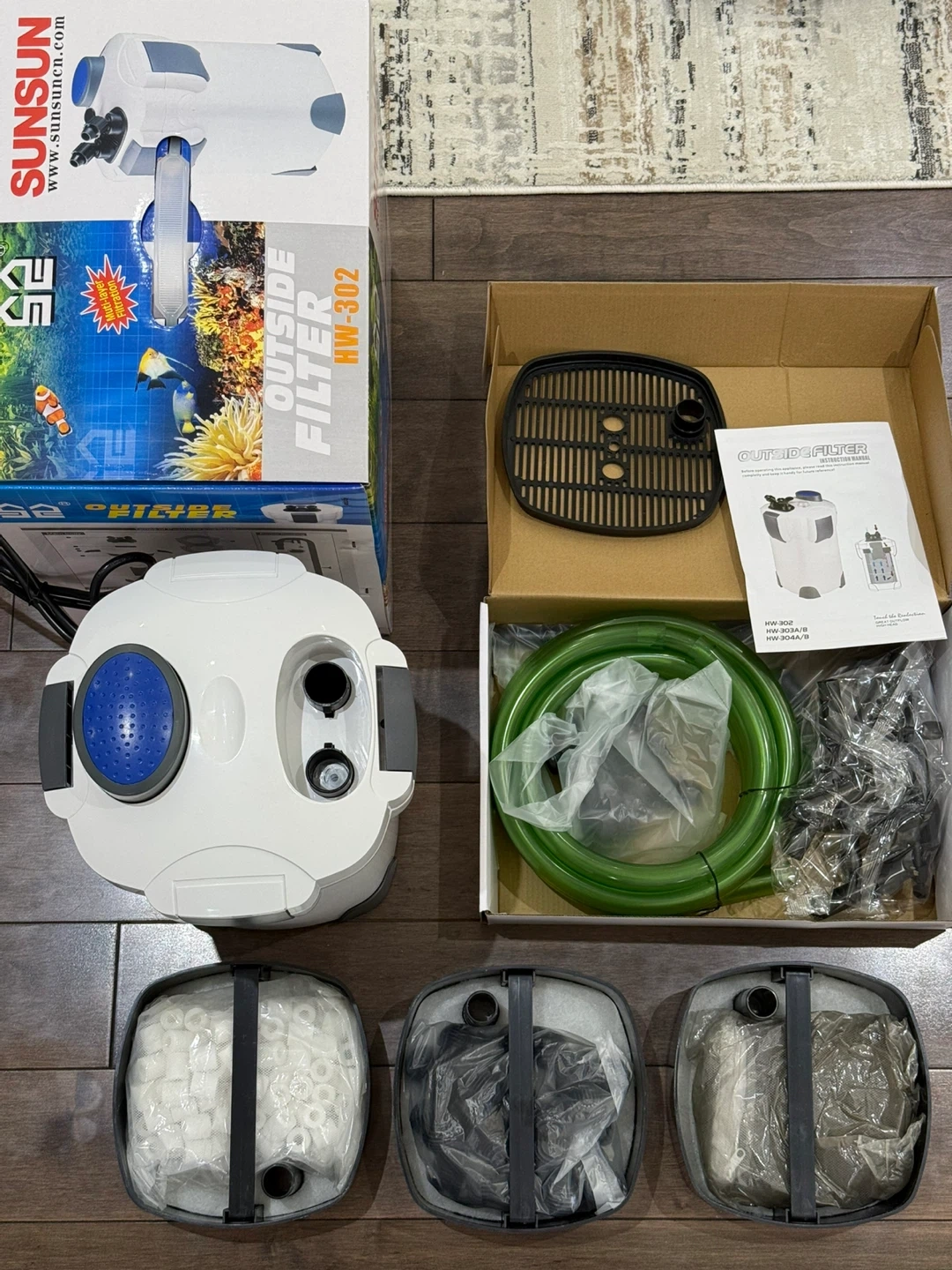 NEW SunSun HW302 Aquarium Canister Filter Complete Media Kit