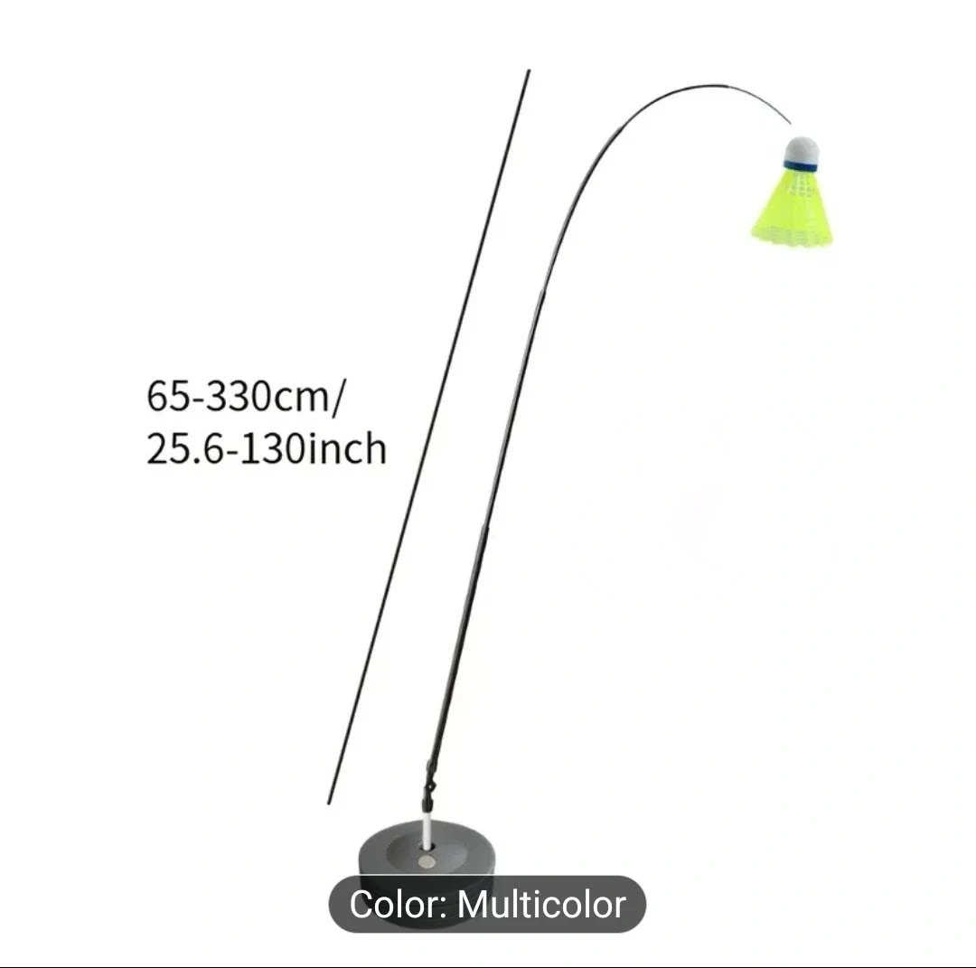 This badminton training rebounder is multicolour. It's adjustable in height from 65-330cm (25.6-130 inches). This is great for practising your badminton skills!